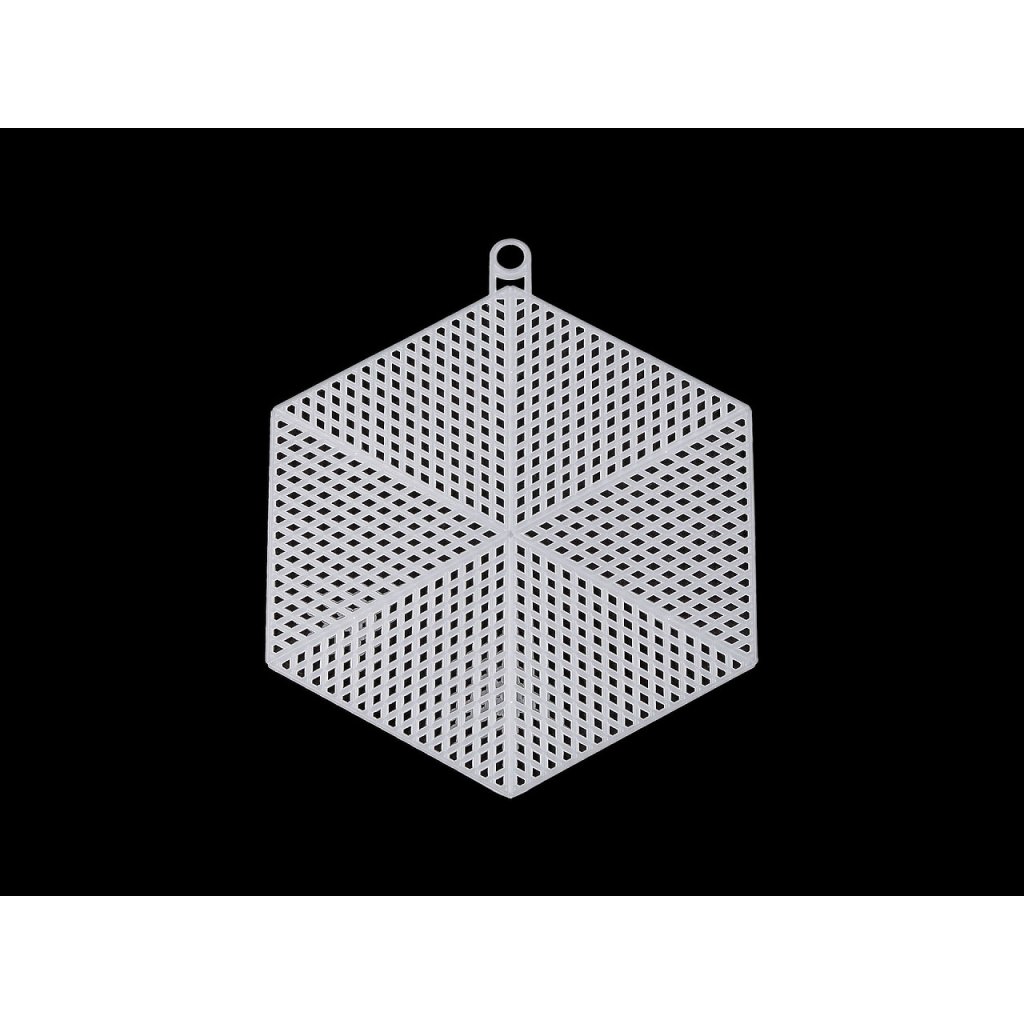 Plastová mřížka je vhodná k výrobě vyšívaných obrázků a dekorací. Nahoře má očko k zavěšení. Používá se silnější příze než u běžného vyšívání - např. příze k pletení nebo háčkování.