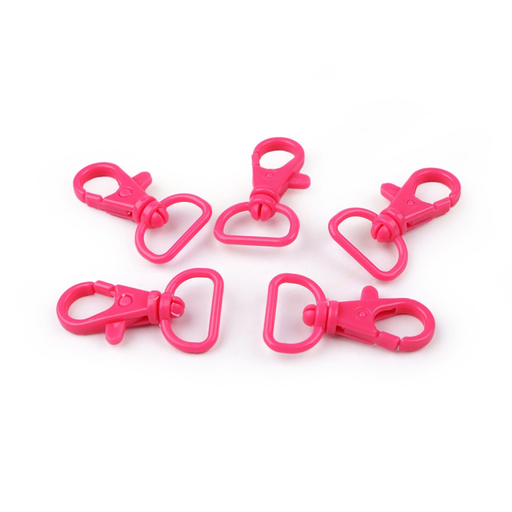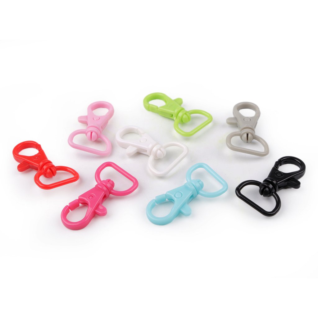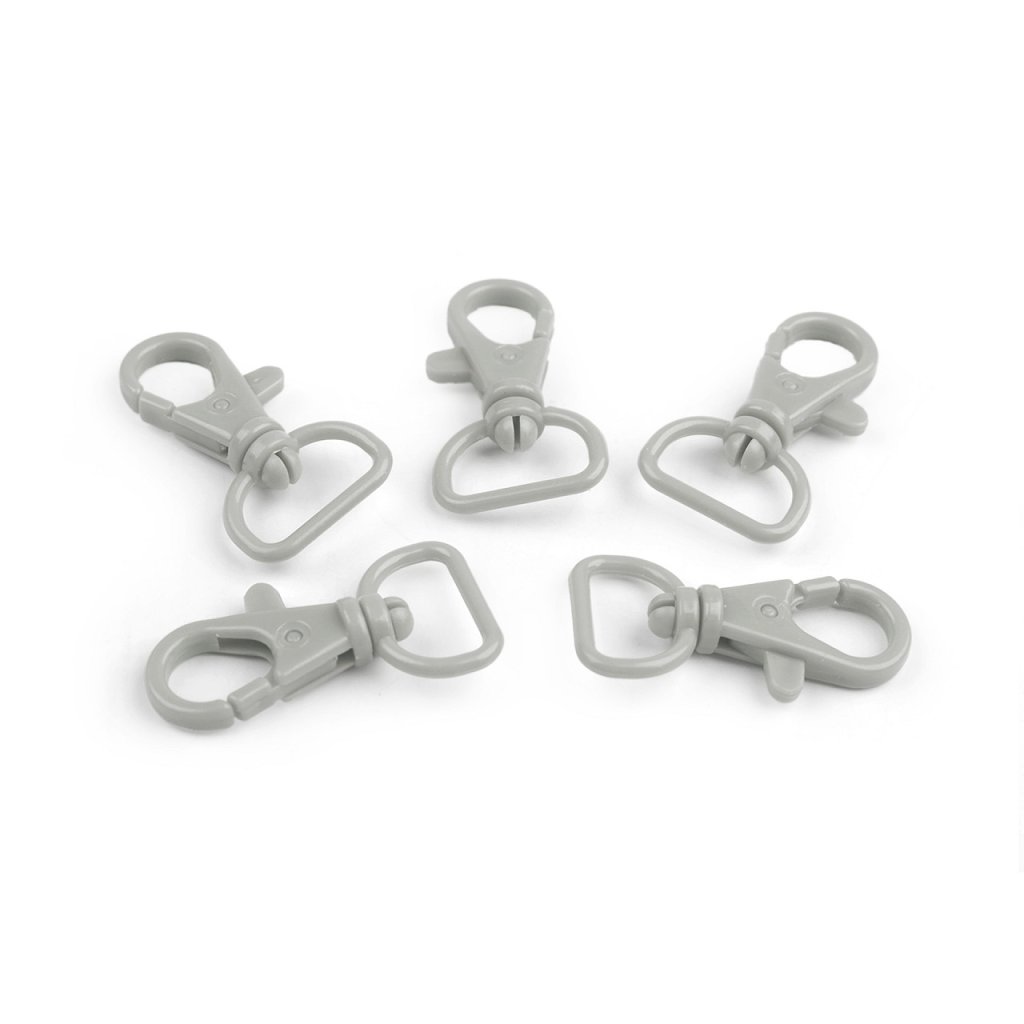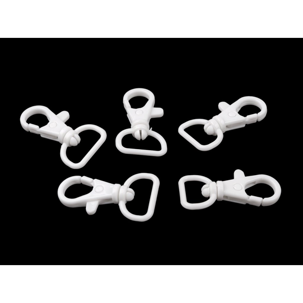 Plastová karabina s otočnou hlavou se hodí k upevnění popruhů k dětským taškám, batůžkům apod. Má malou hmotnost, hodí se i na výrobu šňůrek na krk.