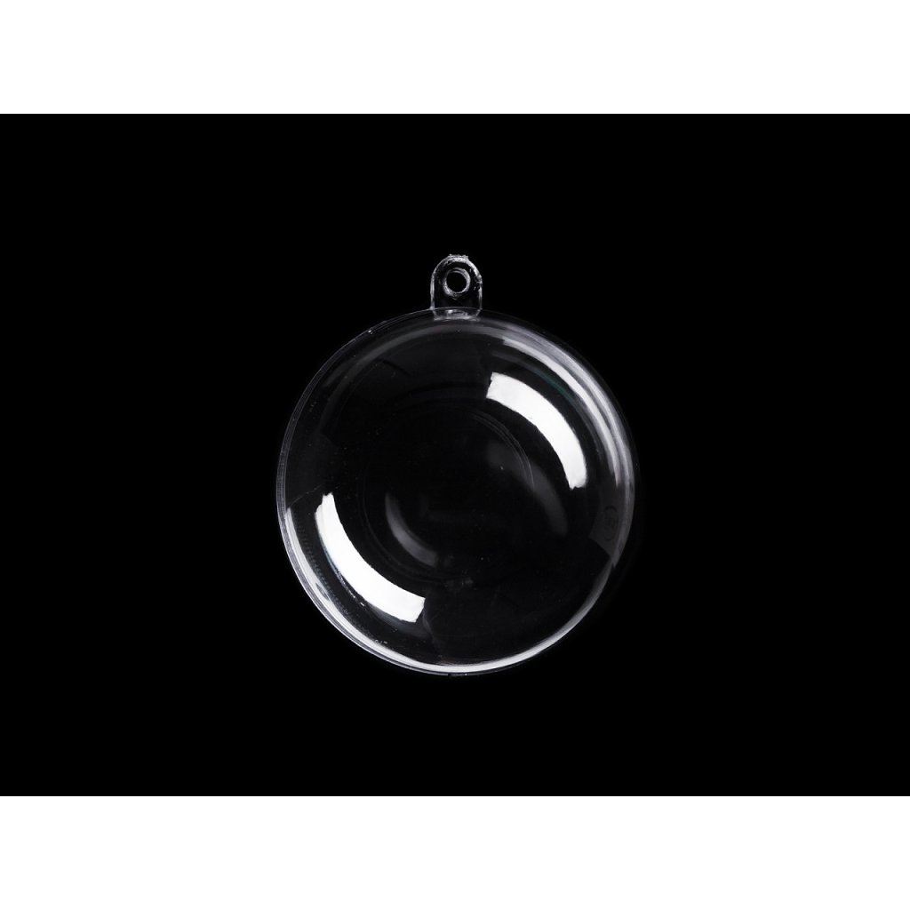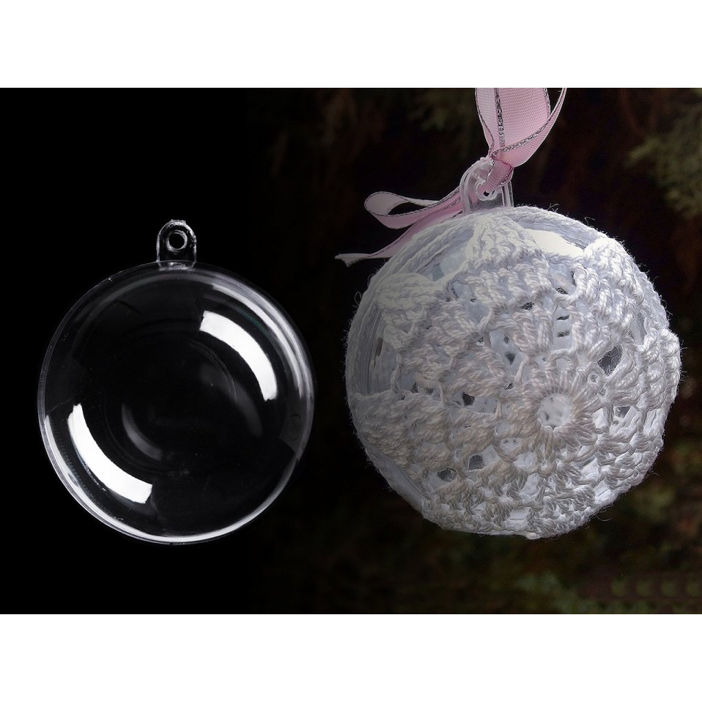Průhledná plastová koule se skládá ze dvou dílů, které spojíte a díky očku pověsíte jako dekoraci. Je určena k dalšímu dozdobení např. ji můžete obháčkovat, dekorovat metodou quilling, ubrouskovou technikou, dozdobit glitry atd. Využijete ji také jako baňku na vánoční stromek.