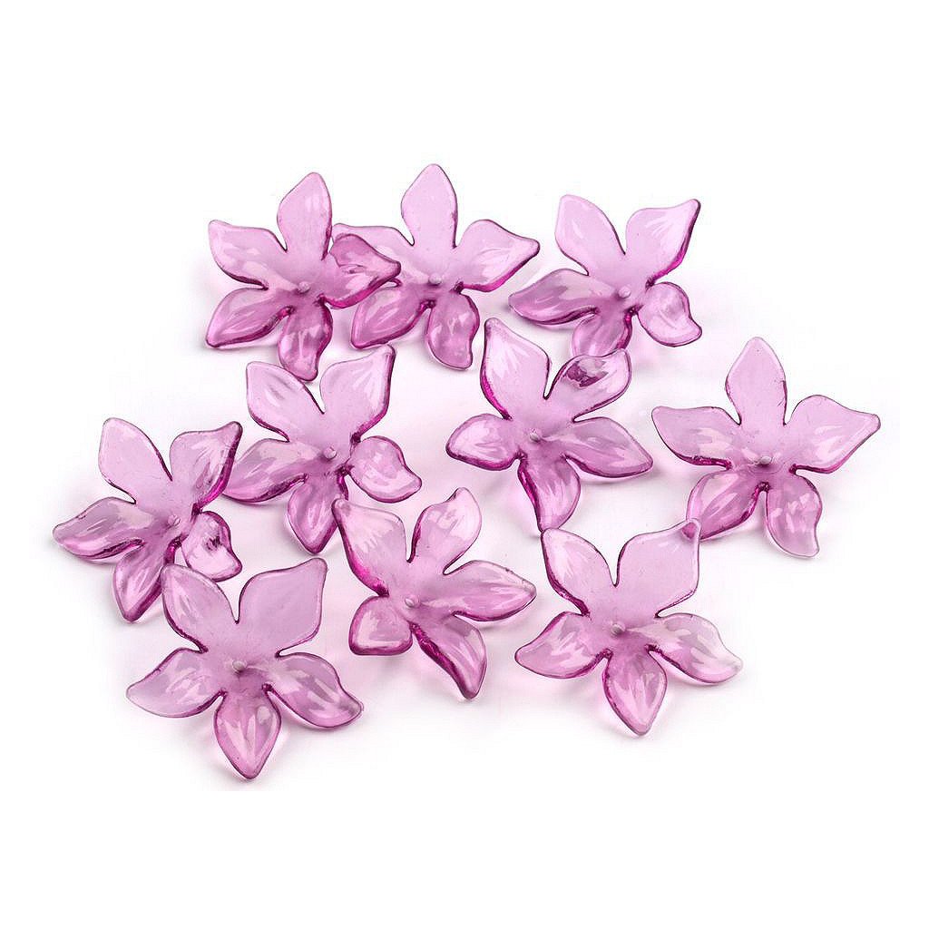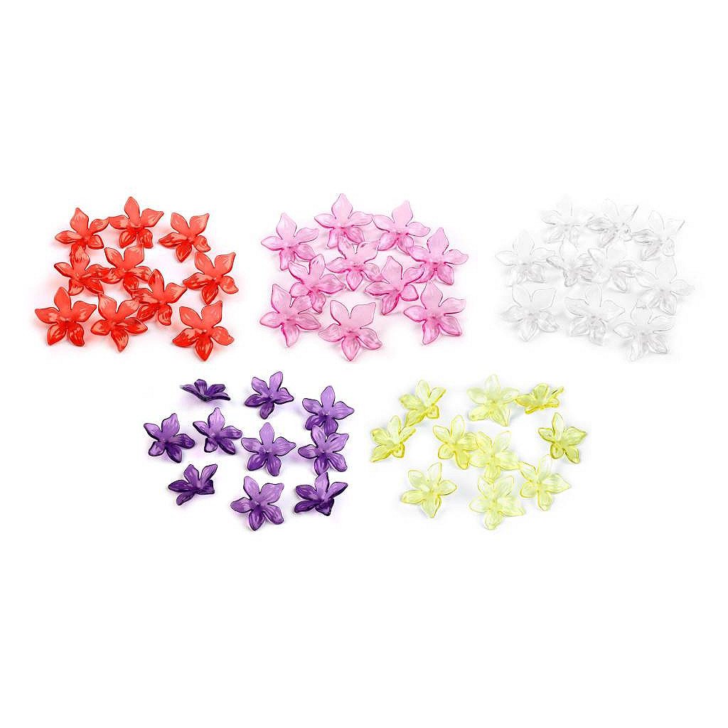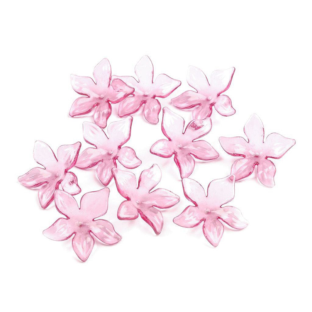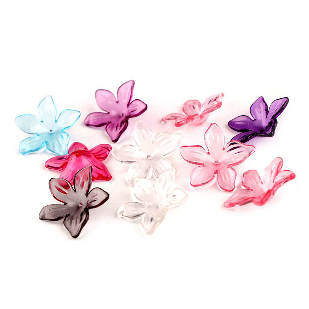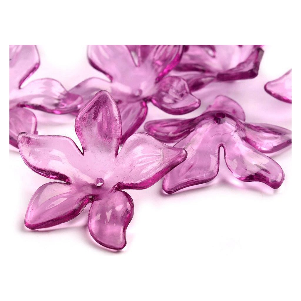 Půvabný plastový květ v transparentních barvách nadchne především korálkářky, které rády tvoří květinové šperky.
