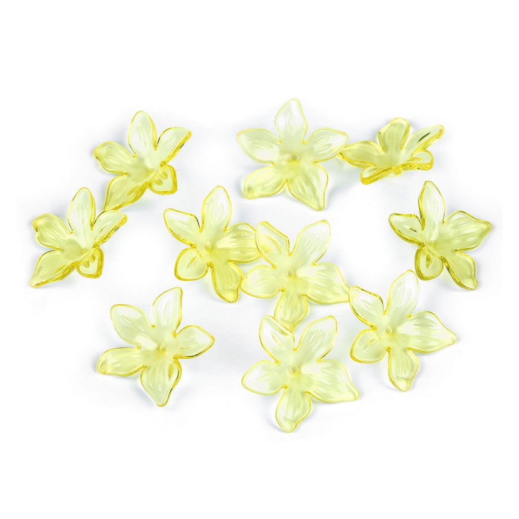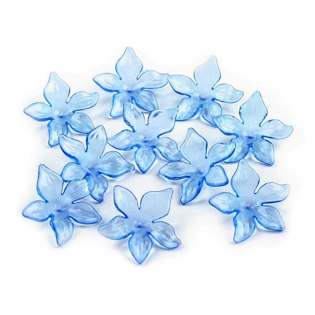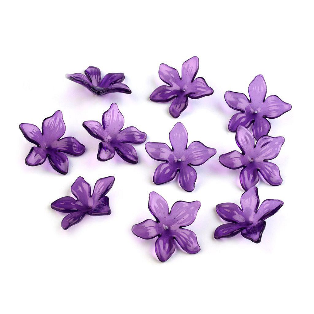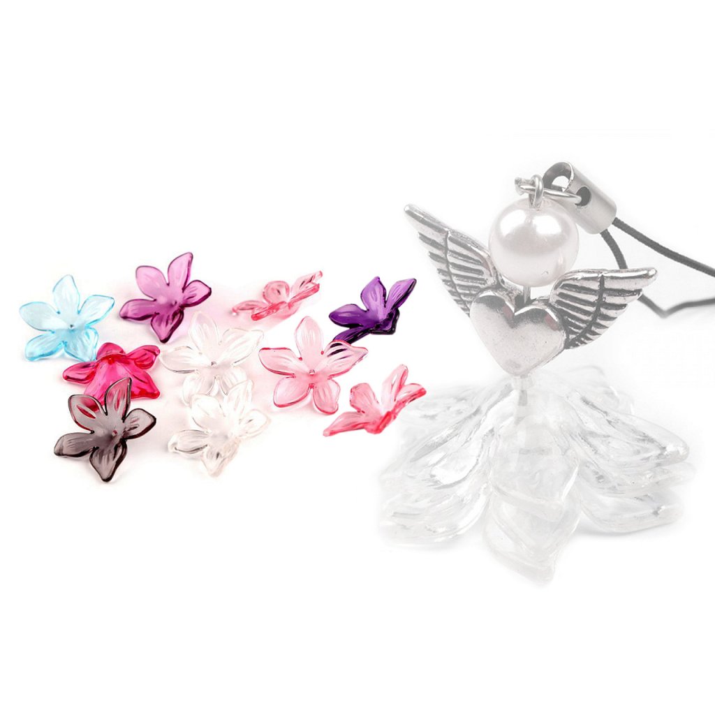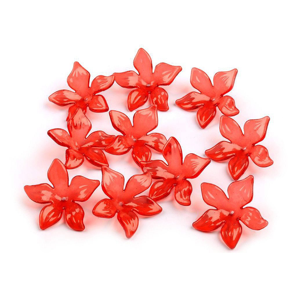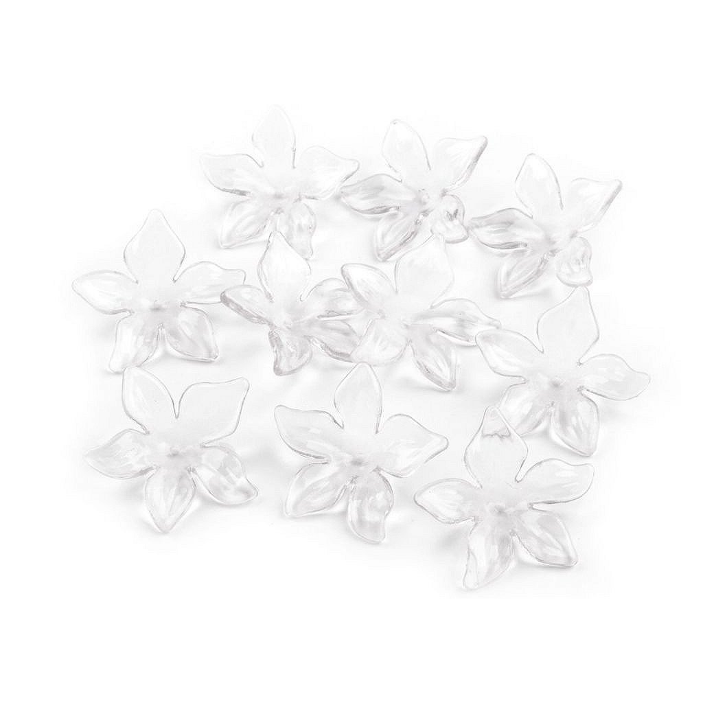 Půvabný plastový květ v transparentních barvách nadchne především korálkářky, které rády tvoří květinové šperky.