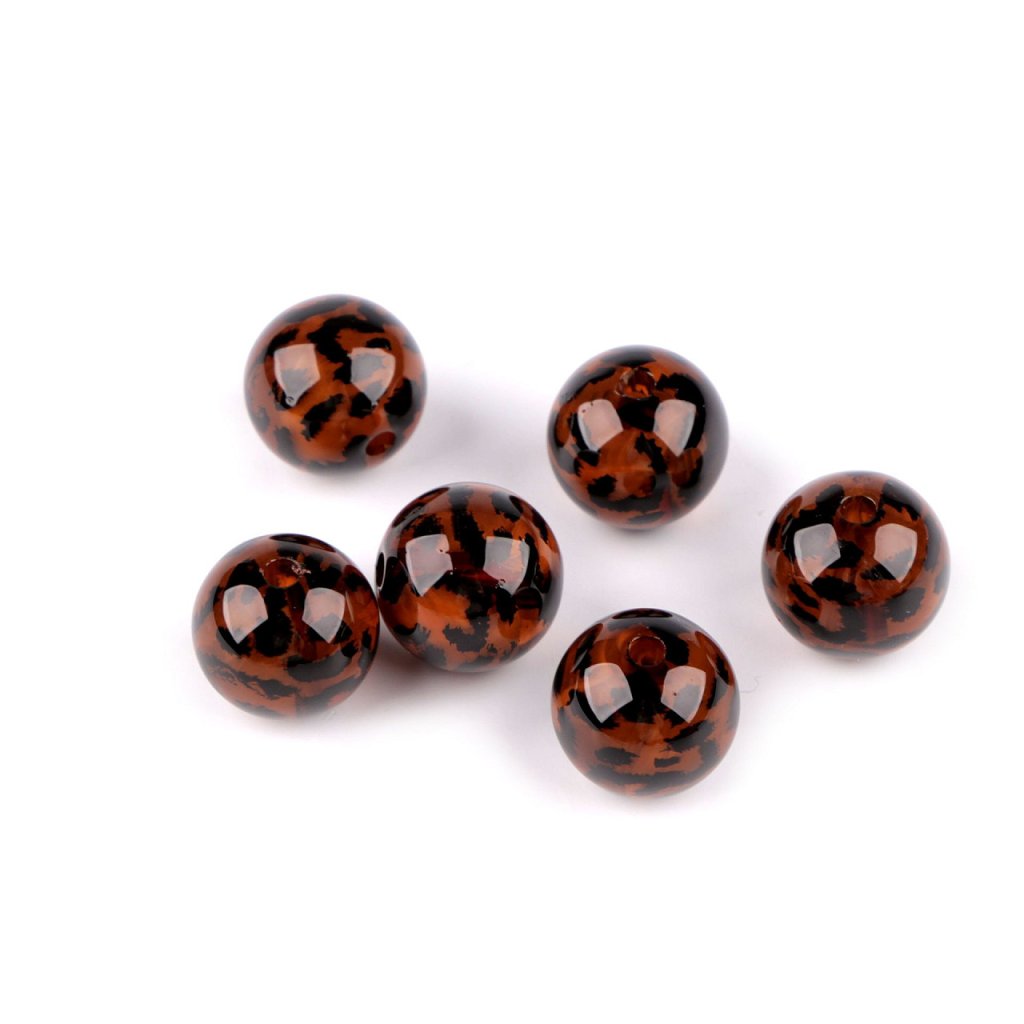 Plastové korálky s leopardím vzorem představují jedinečný designový prvek, který vyniká svou hravostí a netradičním vzhledem. Jsou lesklé, mají zajímavé mnohovrstvé probarvení. Jsou velice kvalitní, všude hladké, nemají žádné otřepení nebo viditelné švy. Můžete je použít k výrobě náramků, náhrdelníků i náušnic, hodí se i jako dekorační prvek do různých přívěsků na kabelky, batohy a klíče, využijete je i k ozdobení klobouků.
