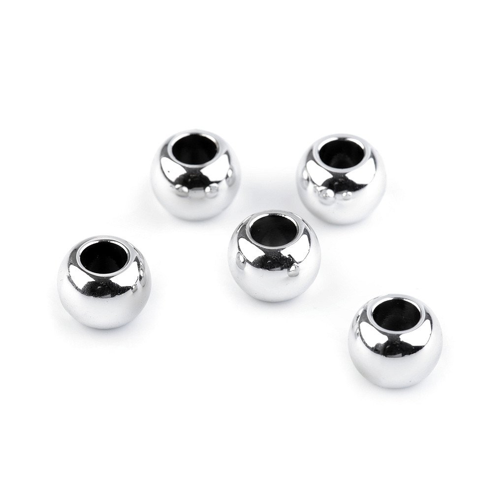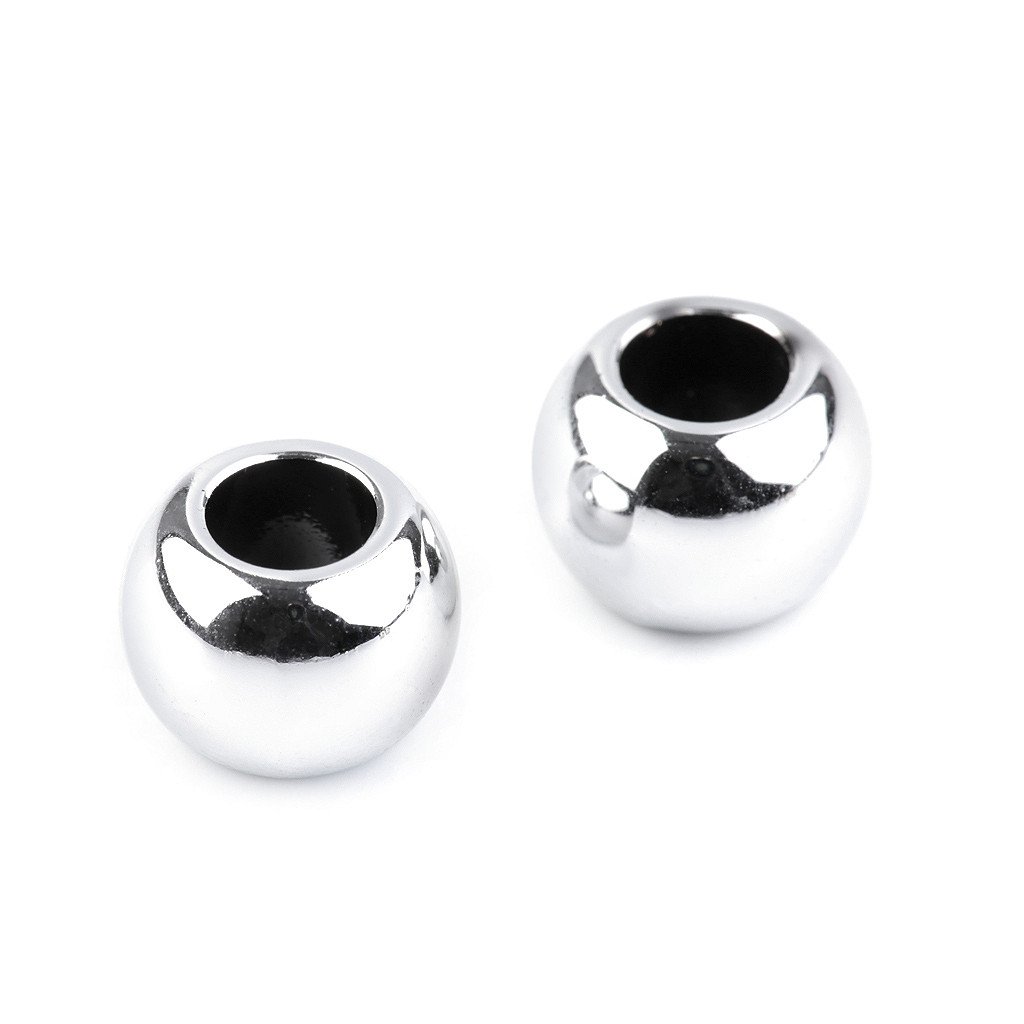 Plastové korálky s velkým průvlekem s vysokým leskem věrně imitují opravdový kov.