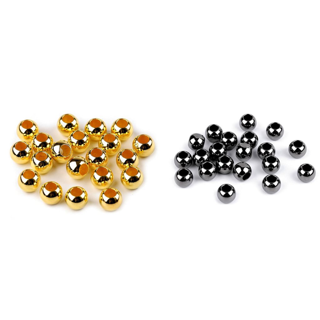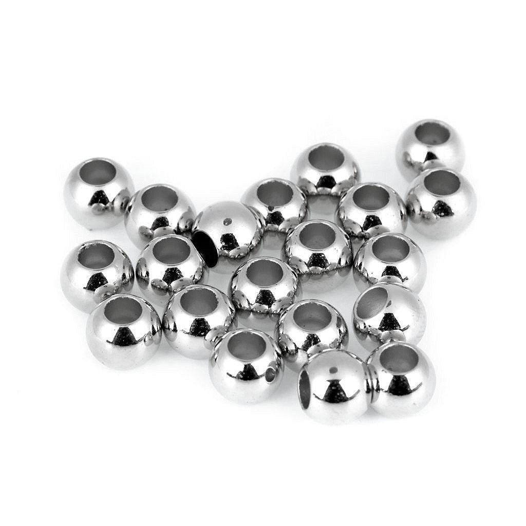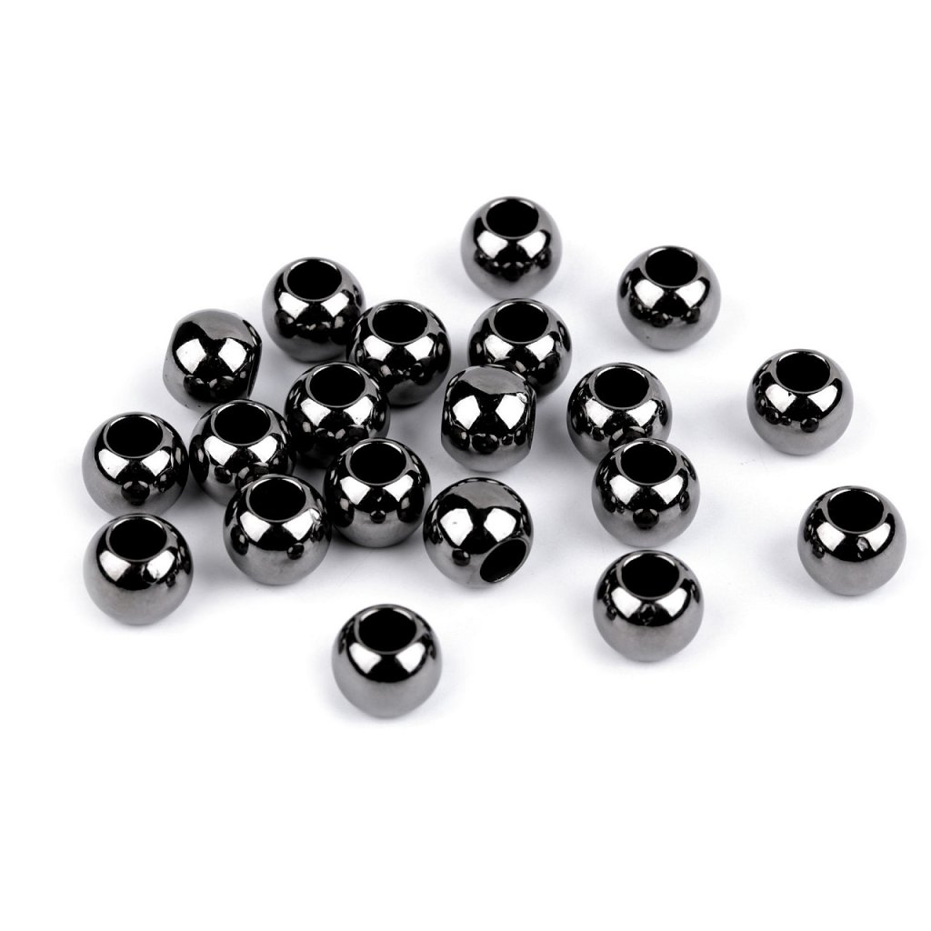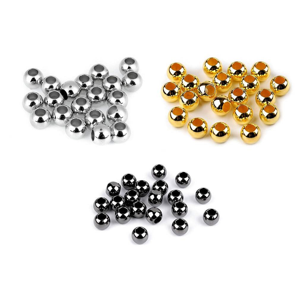 Plastové korálky s velkým průvlekem mají vysoký lesk, který věrně imituje opravdový kov.