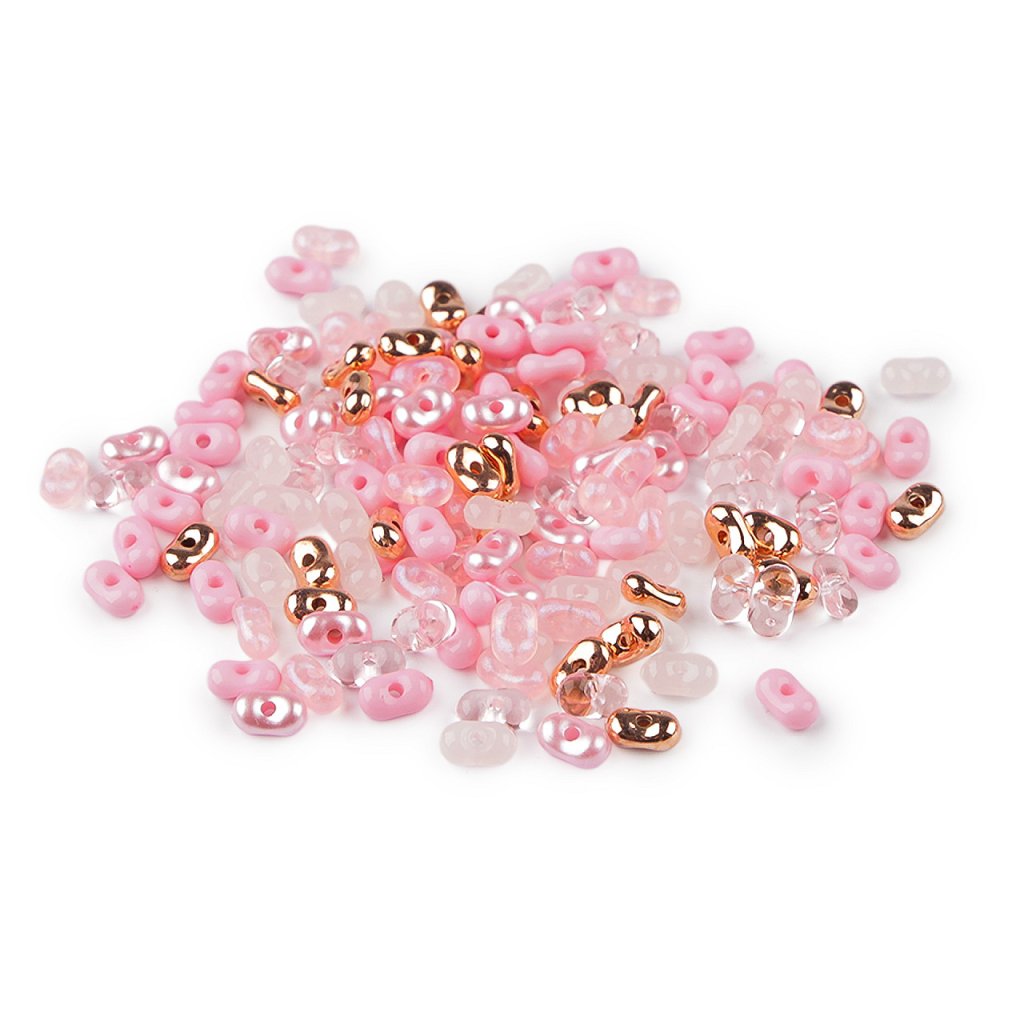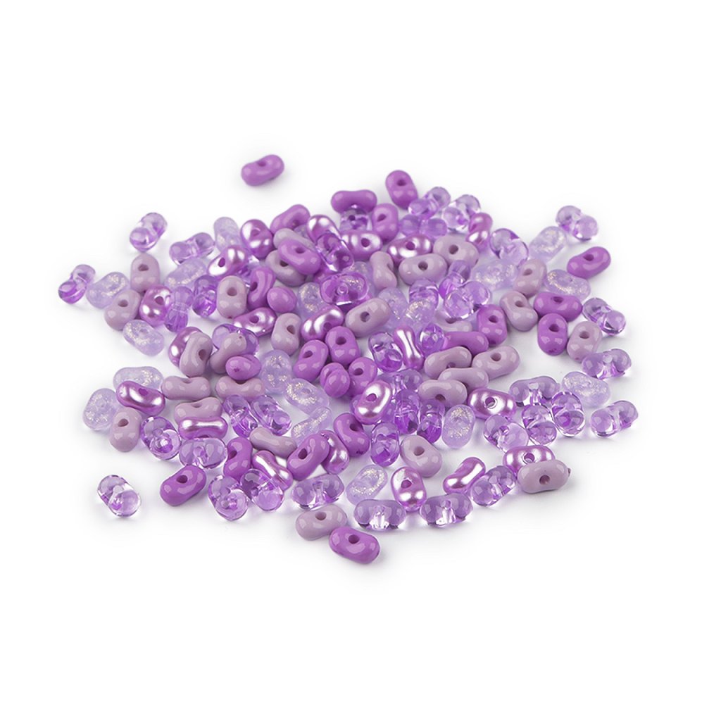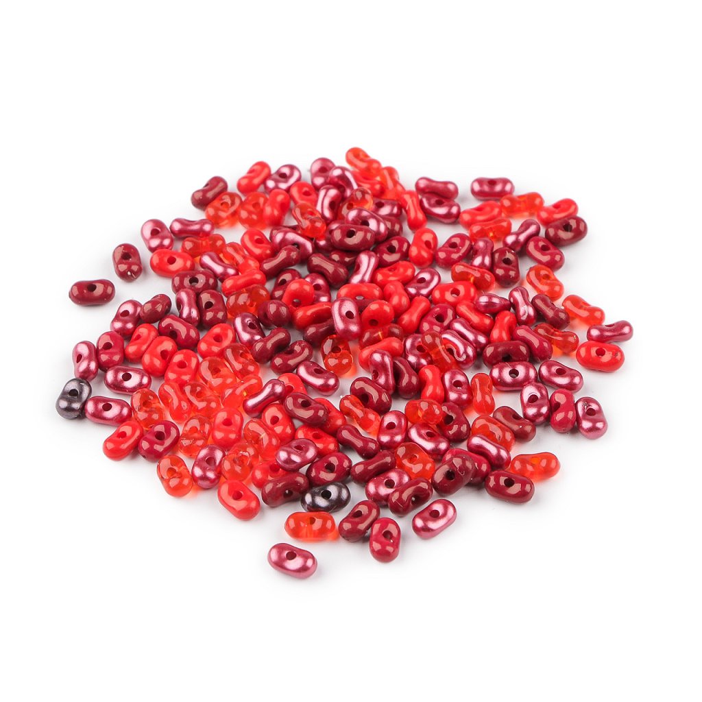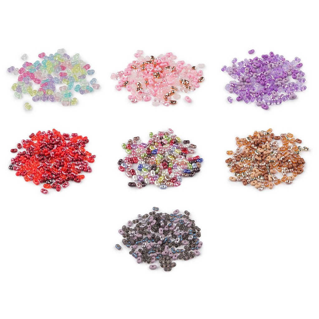 Malé plastové korálky mají zajímavý tvar arašídů. Na obou koncích jsou buclaté, uprostřed zmáčknuté, průvlek mají umístěný uprostřed korálku. Po navlečení vedle sebe vytváří zajímavý 3D efekt. Mají syté barvy, jsou velice kvalitní, všude hladké, nemají žádné otřepení nebo viditelné švy. Využijete je na výrobu bižuterie a zdobení oděvů, tašek či dekorací do bytu.