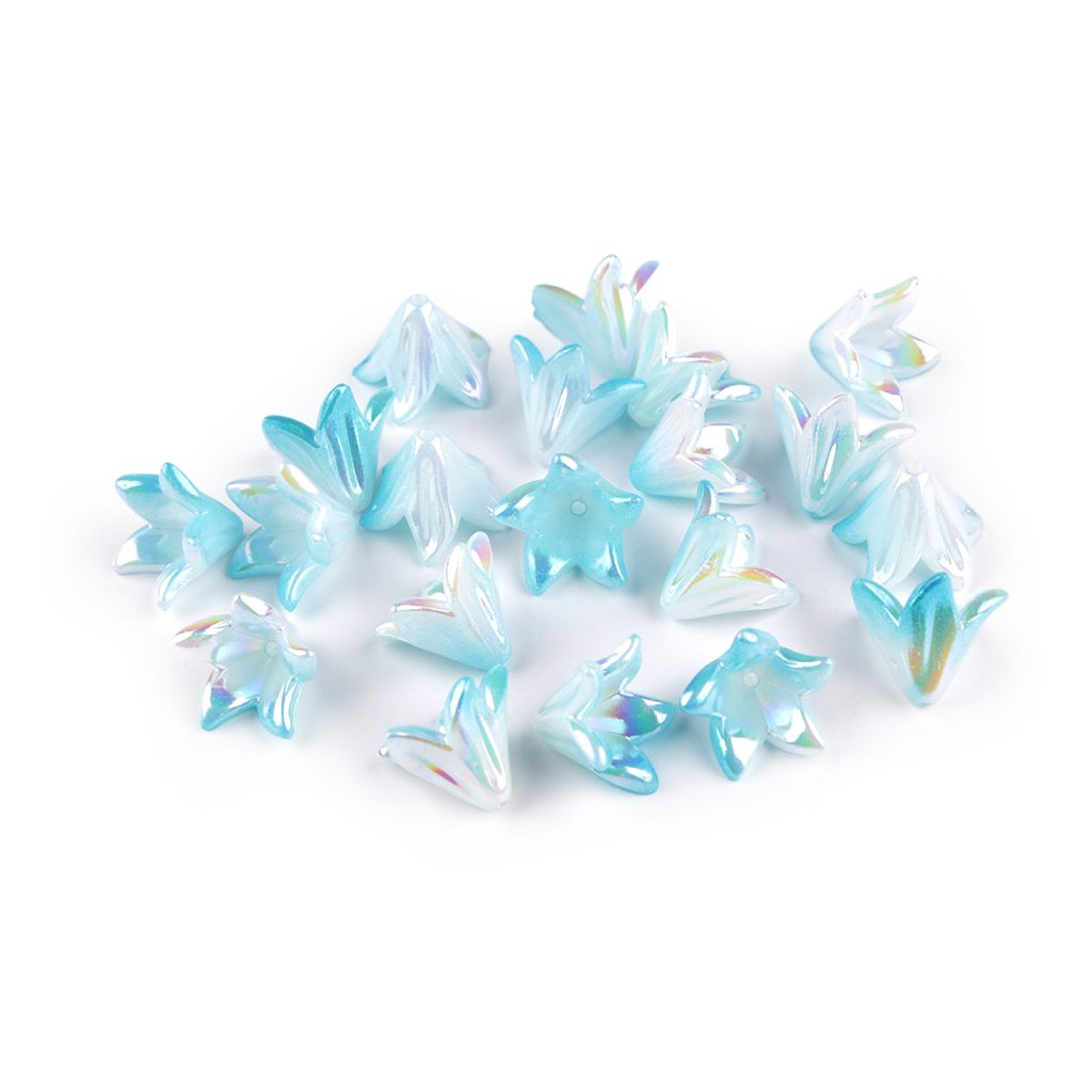 Plastové korálky s AB efektem květ / zvoneček / sukýnka 12x16 mm