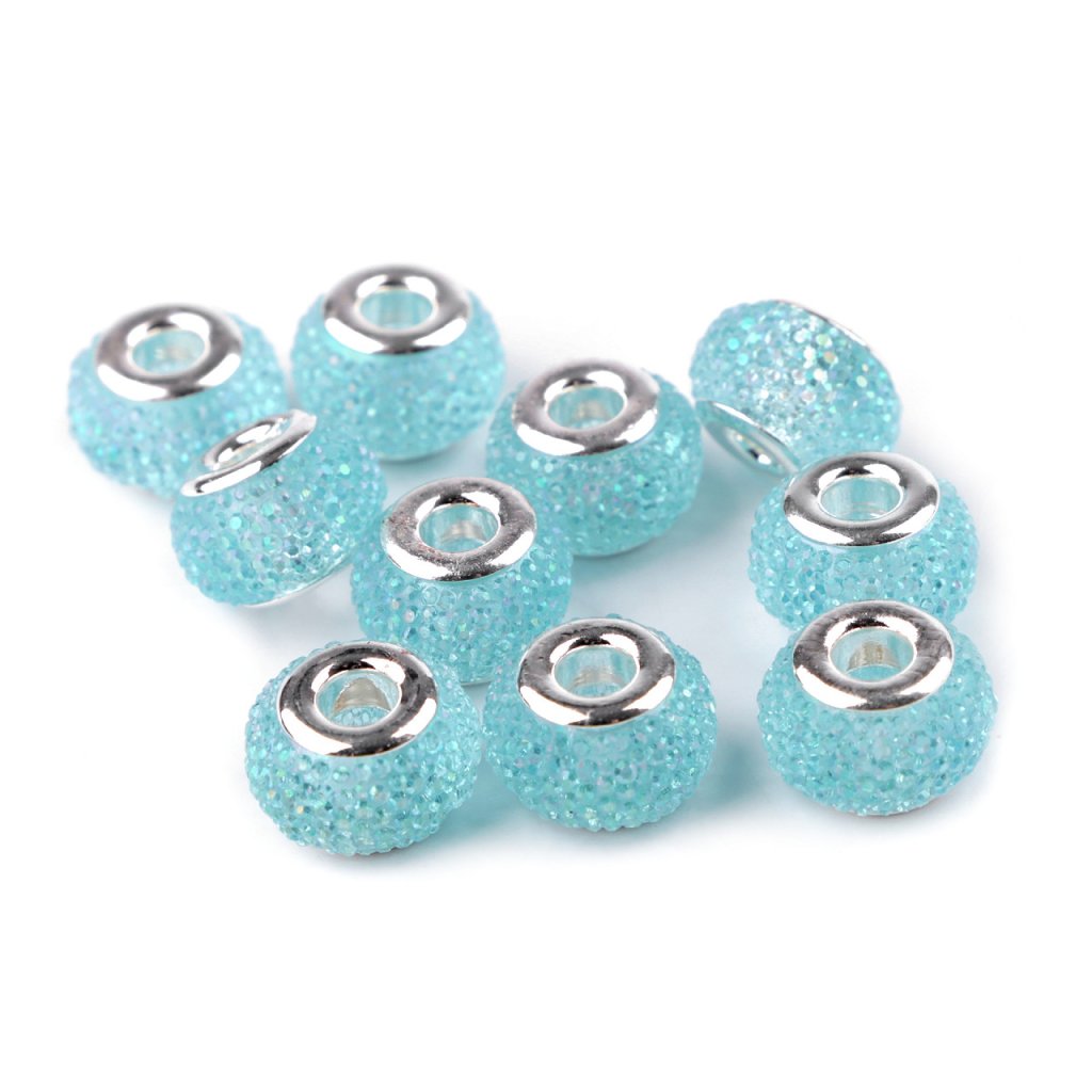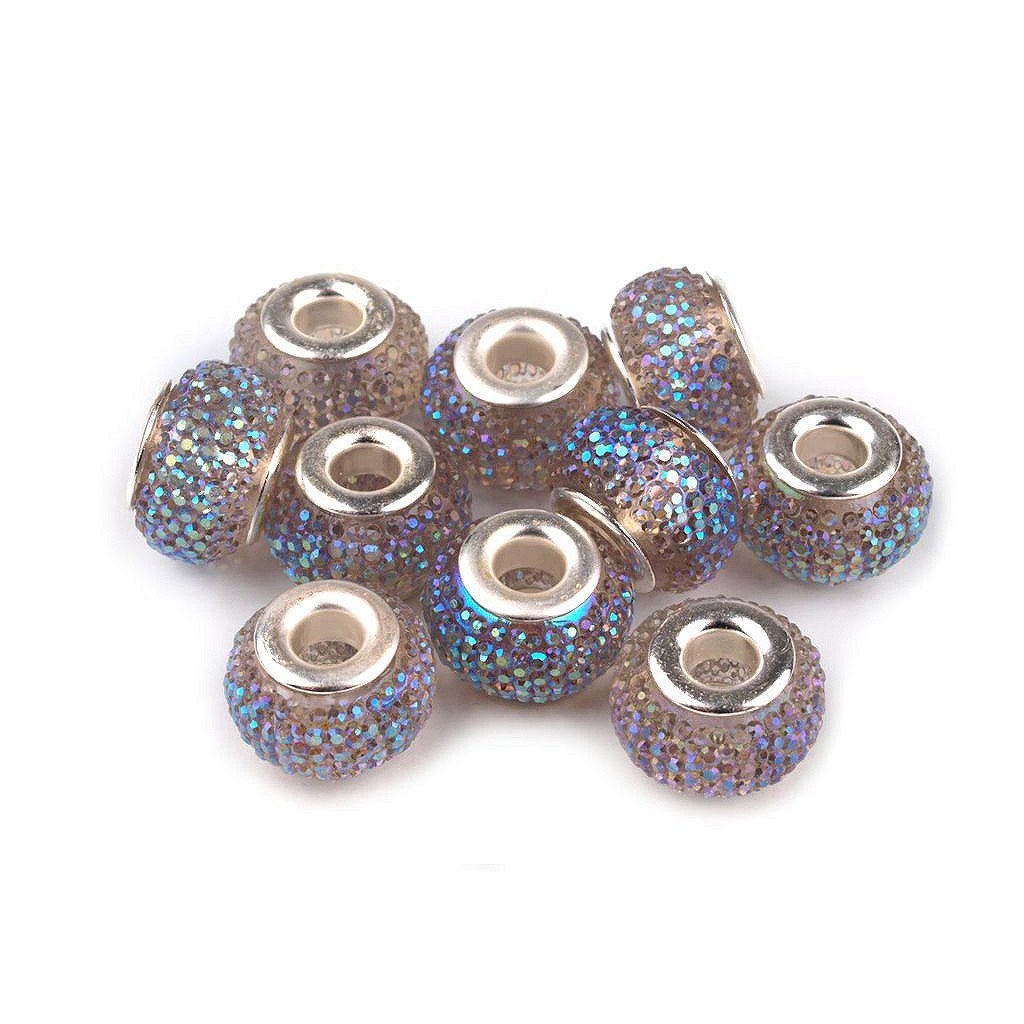 Navíc mají povrch s AB efektem, jenž způsobuje vysoký duhový třpyt korálku. Jejich velikou výhodou je lehkost použitého materiálu. Průvlek je začištěný kovovou průchodkou.