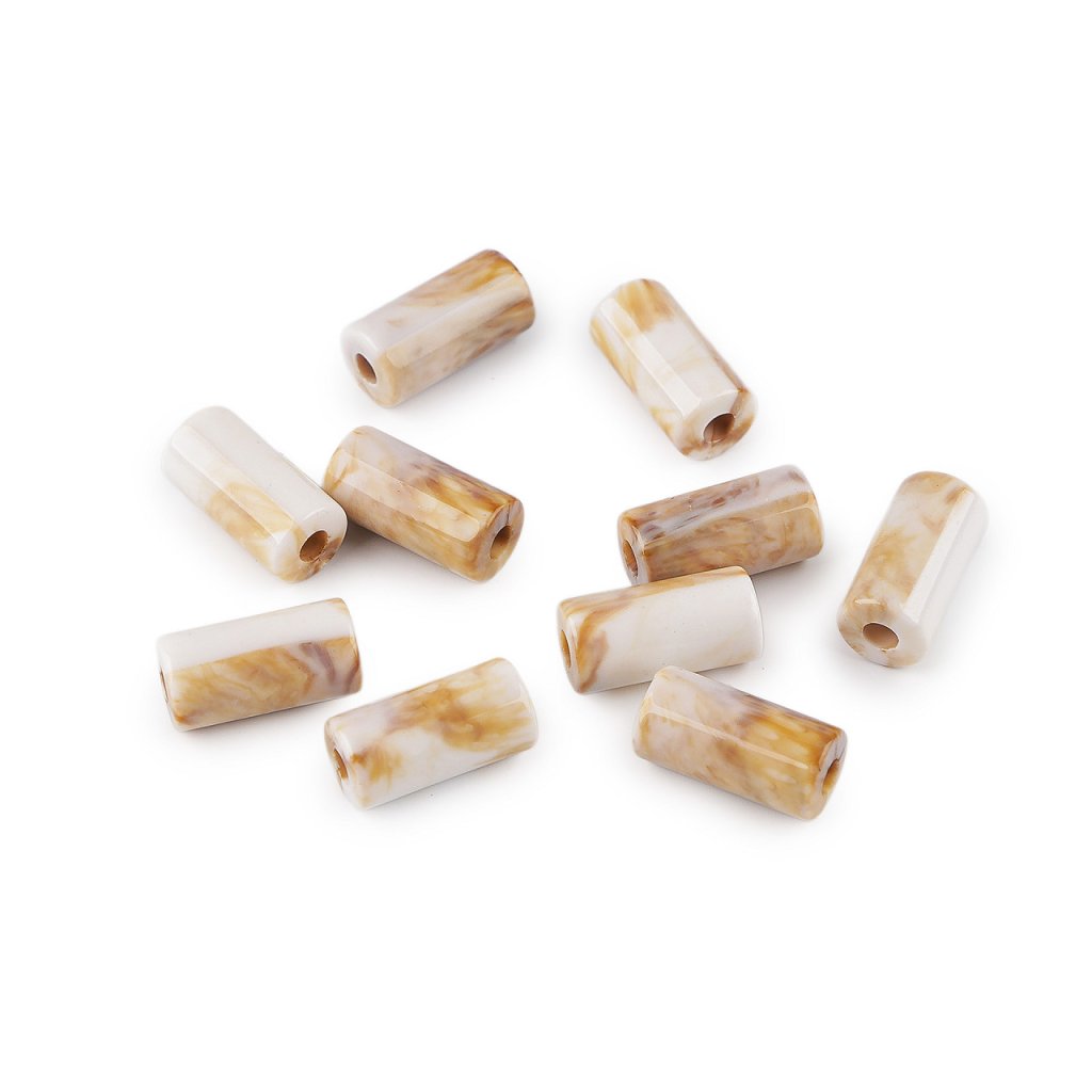 Žíhané plastové korálky válečky jsou zajímavé svým probarvením imitujícím mramor, kdy každý korálek je jiný. Jemně se lesknou, jsou velice příjemné na pohled, působí přírodním dojmem. Jsou velice kvalitní, všude hladké, nemají žádné otřepení nebo viditelné švy. Využijete je na výrobu bižuterie i různých dekorací, např. lapačů snů. Skvěle se kombinují s dalšími korálky různých tvarů a materiálů.