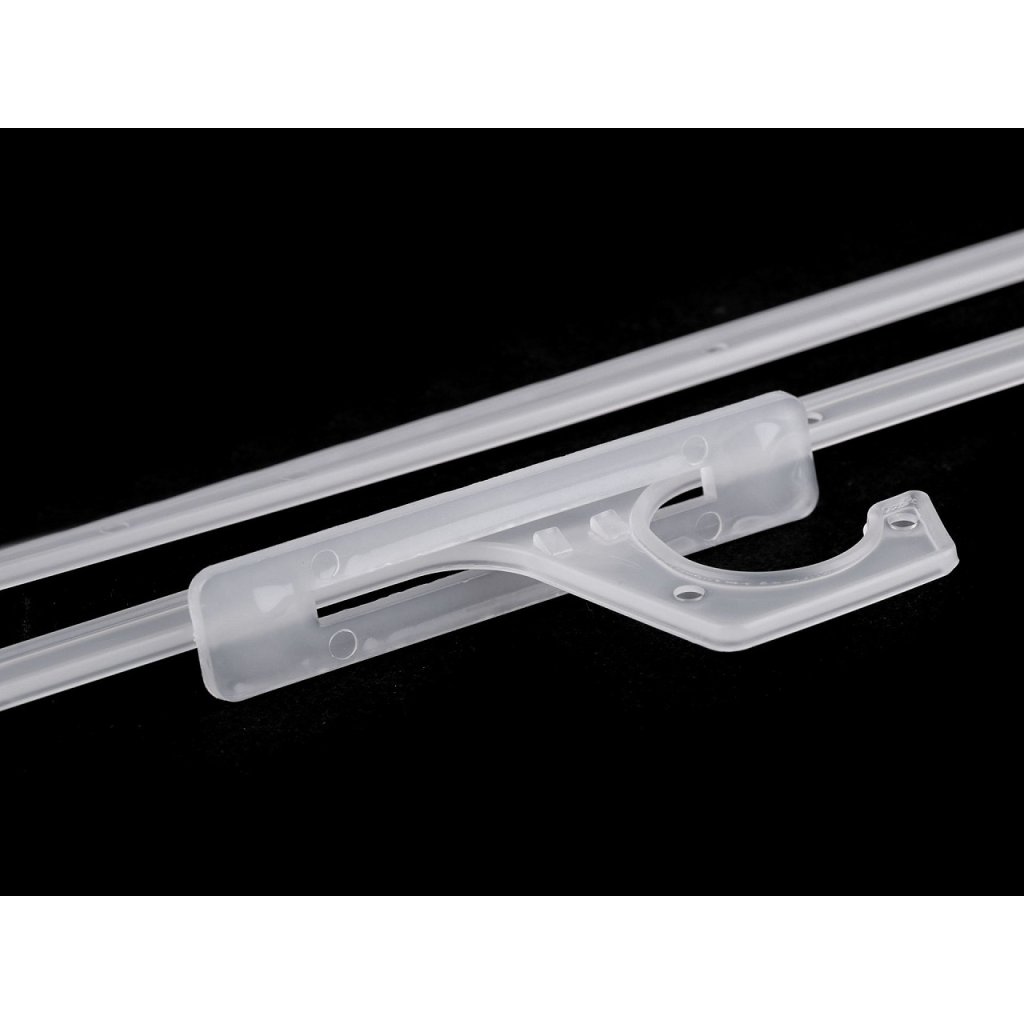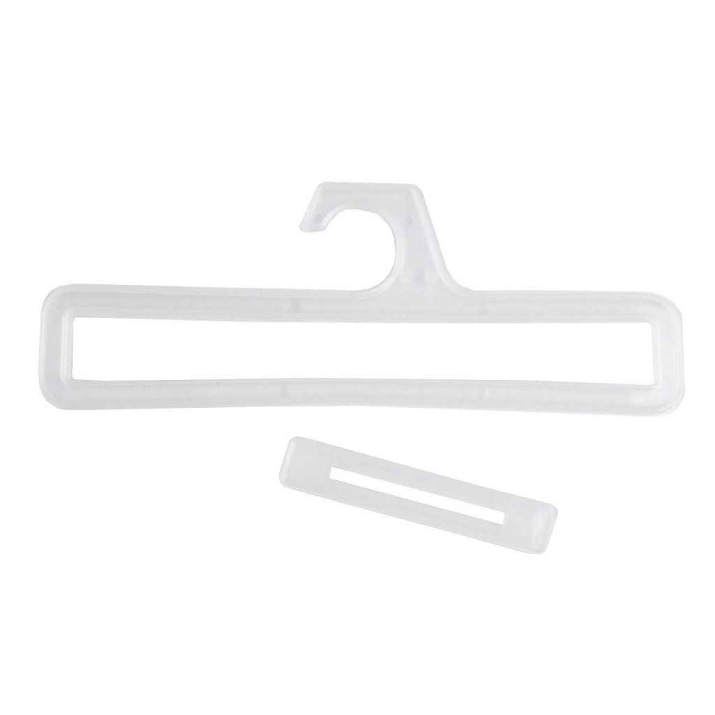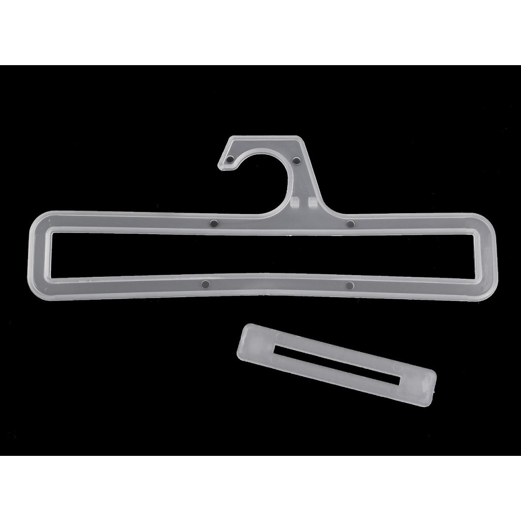 Plastové ramínko je vhodné pro prodejny na vystavení zboží (šátků, metráže látek, vzorkovníků apod.). V případě potřeby (u zboží se závěsem či s nějakým otvorem) můžete do horní části vložit přiloženou zarážku a zboží zajistit.