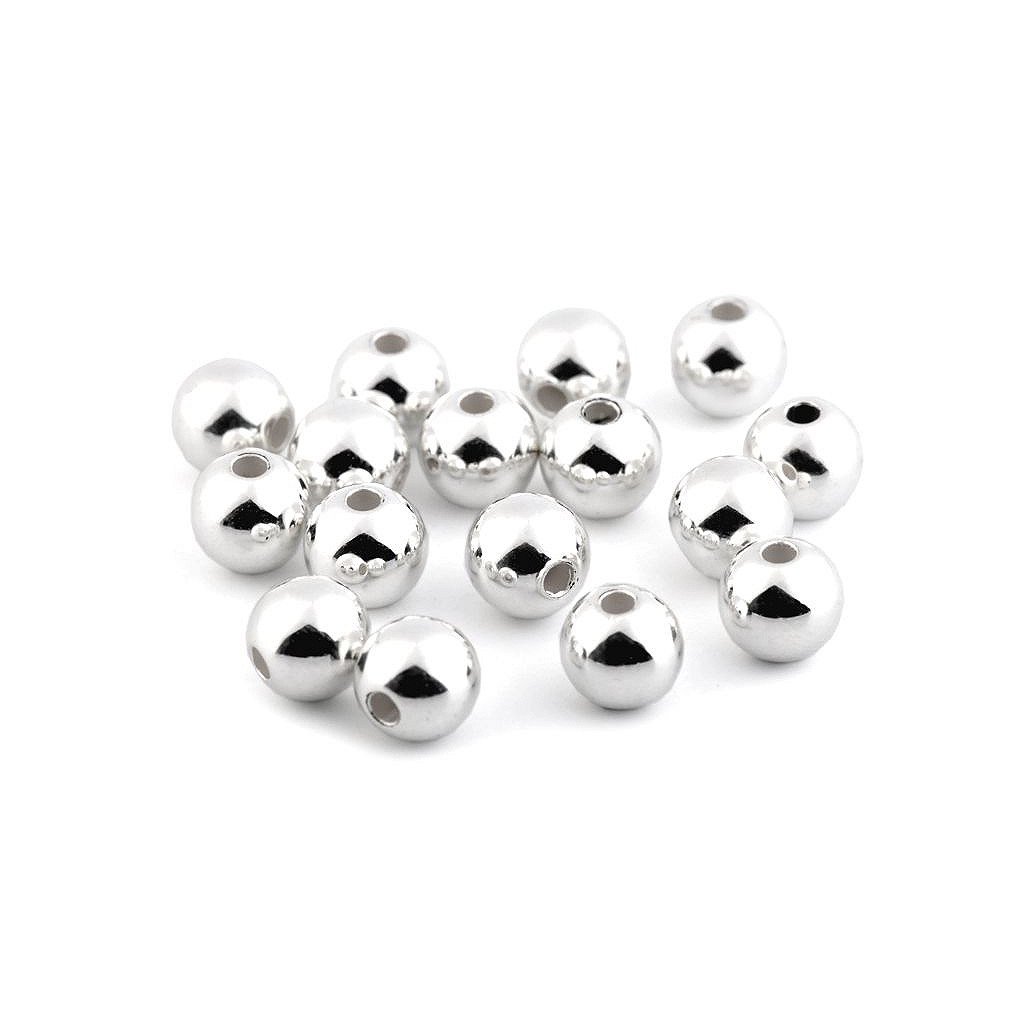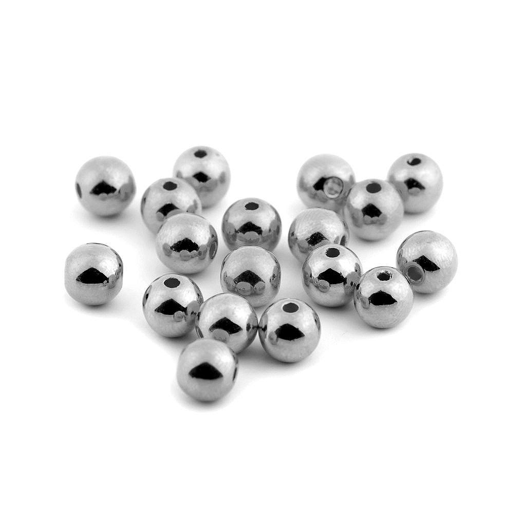 Úchvatné plastové korálky ve tvaru kuličky s metalickou, vysoce lesklou úpravou na povrchu.