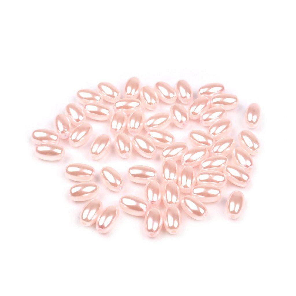 Plastové voskové korálky / perly Glance oliva 6x10 mm