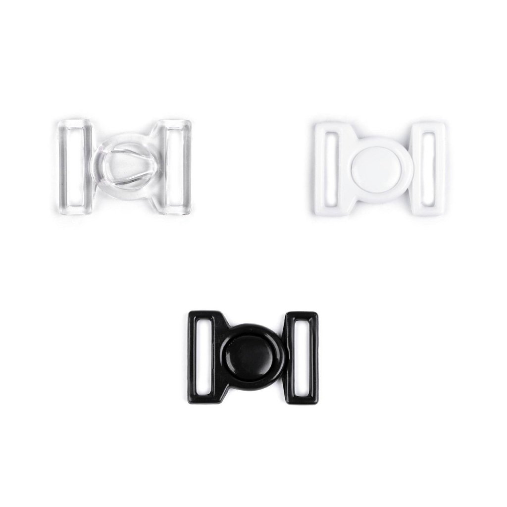 Plastové zapínání je vhodné na plavky. Zapíná se vsunutím jednoho dílu mezi druhý díl a zacvaknutím.