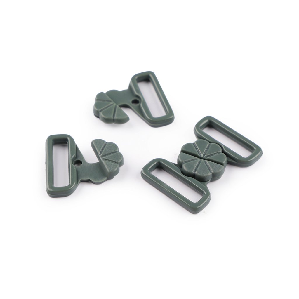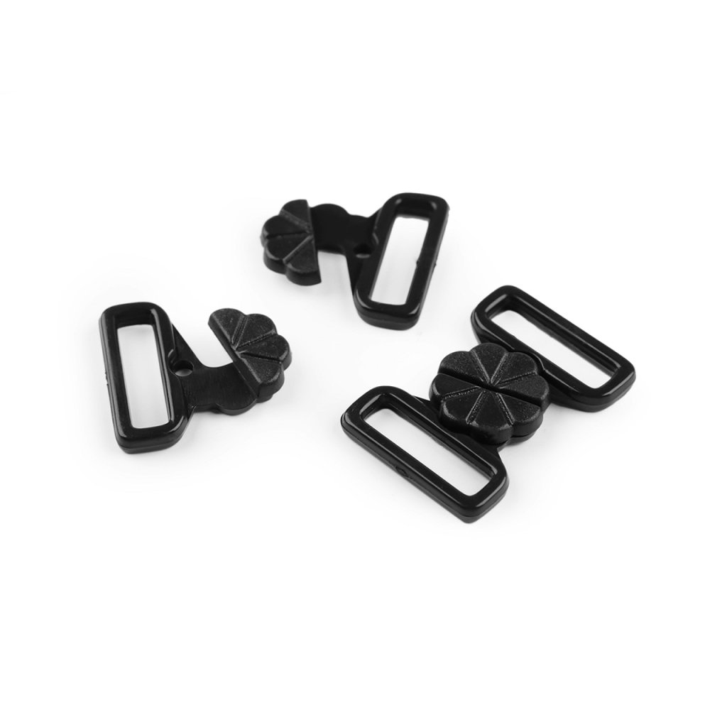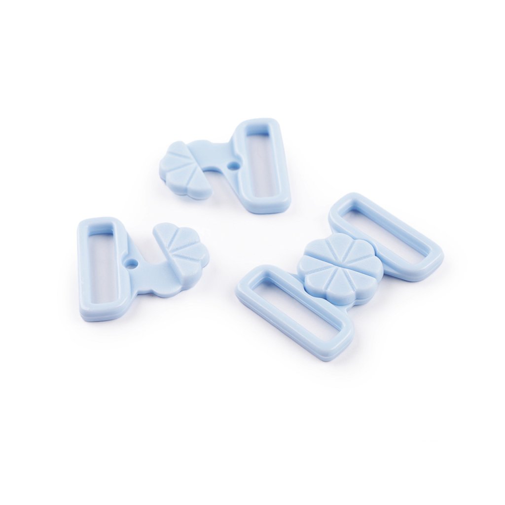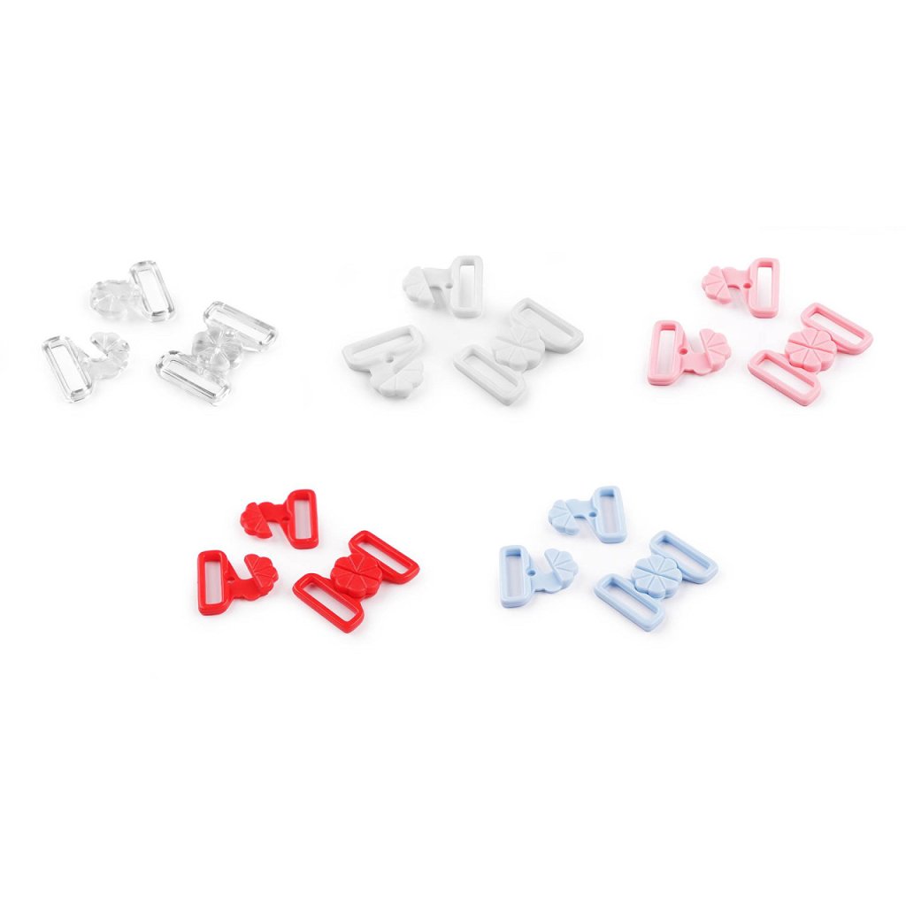 Plastové zapínání s designem květu využijete na plavky. Zapíná se vsunutím jednoho dílu mezi druhý díl a zacvaknutím. Rozměry jednoho dílu spony jsou 22 x 22 mm.
