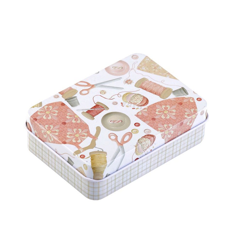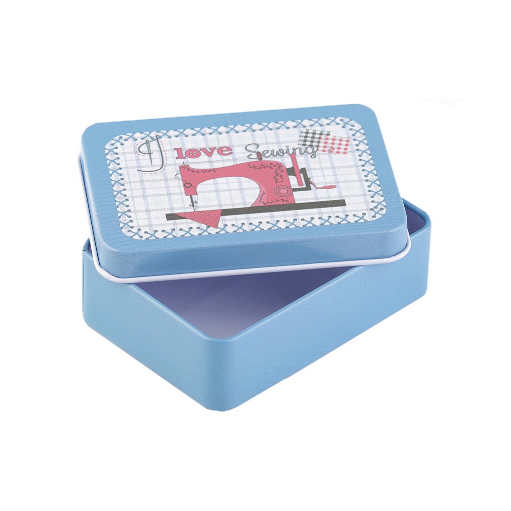 Malou plechovou krabičku využijete na drobnosti. Její švadlenkovský design ji předurčuje na uložení šicích potřeb jako jsou knoflíky, jehly, nitě, zkrátka všechny drobnosti, jež švadlenka potřebuje. Má sundavací víko, takže si do ní vše pohodlně schováte. Krabička se stane praktickým i ozdobným pomocníkem, který vás vždy potěší.