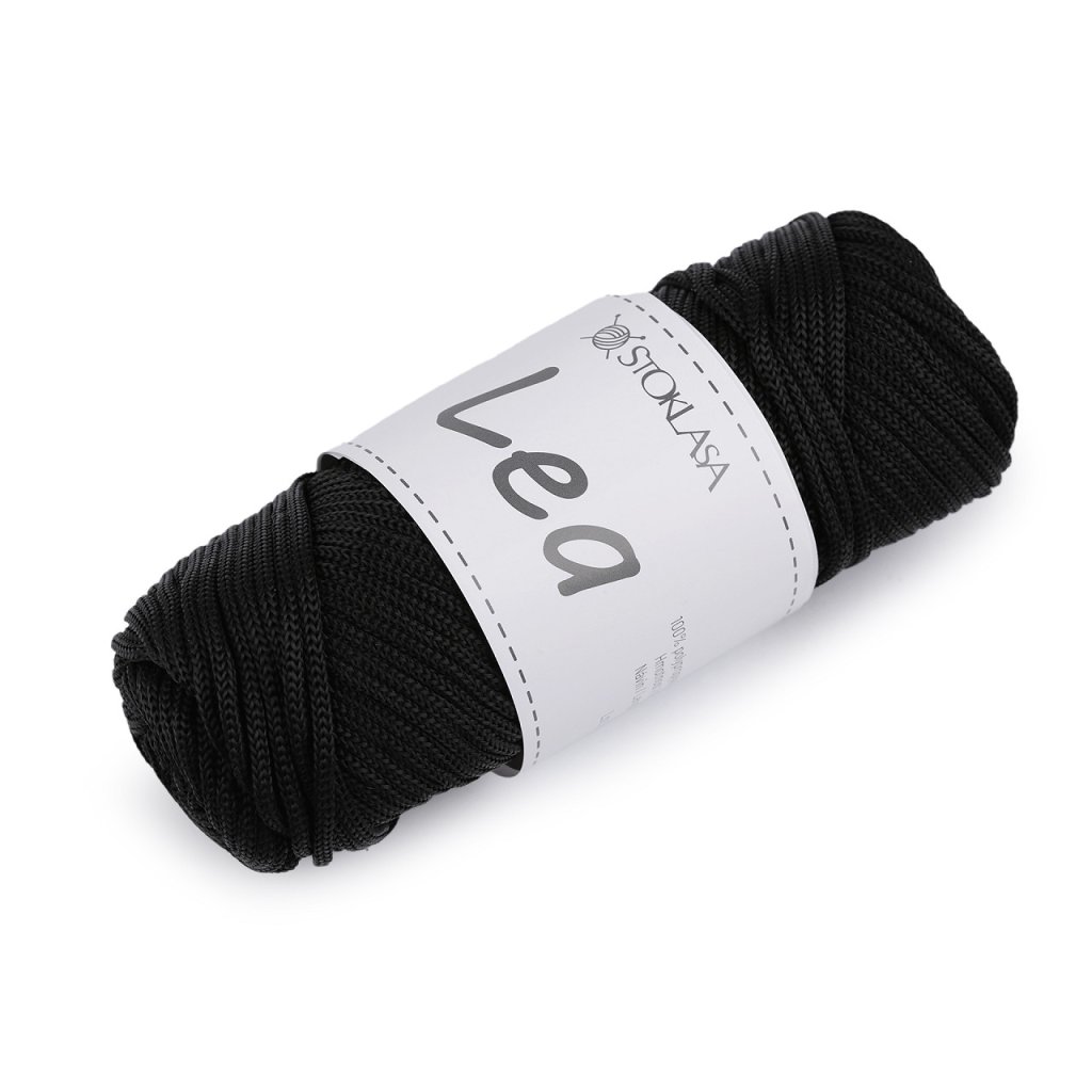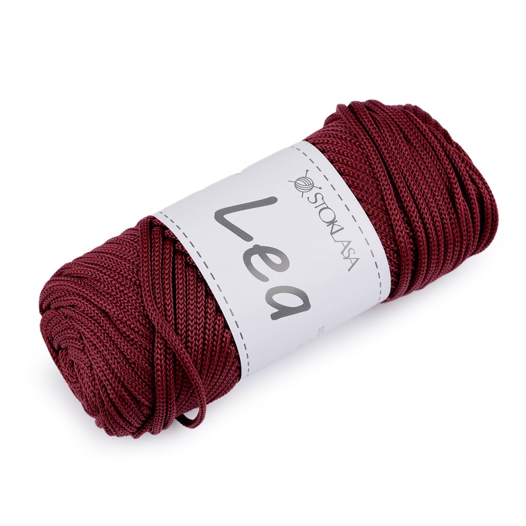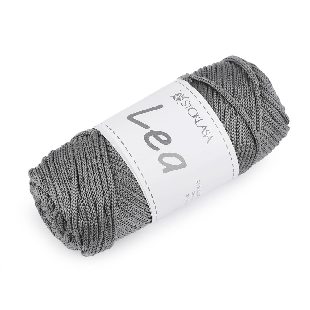 Pletací příze Lea připomíná provázek. Její povrch se jemně leskne. Hodí se na pletení a háčkování tašek, košíků a podobných výrobků.