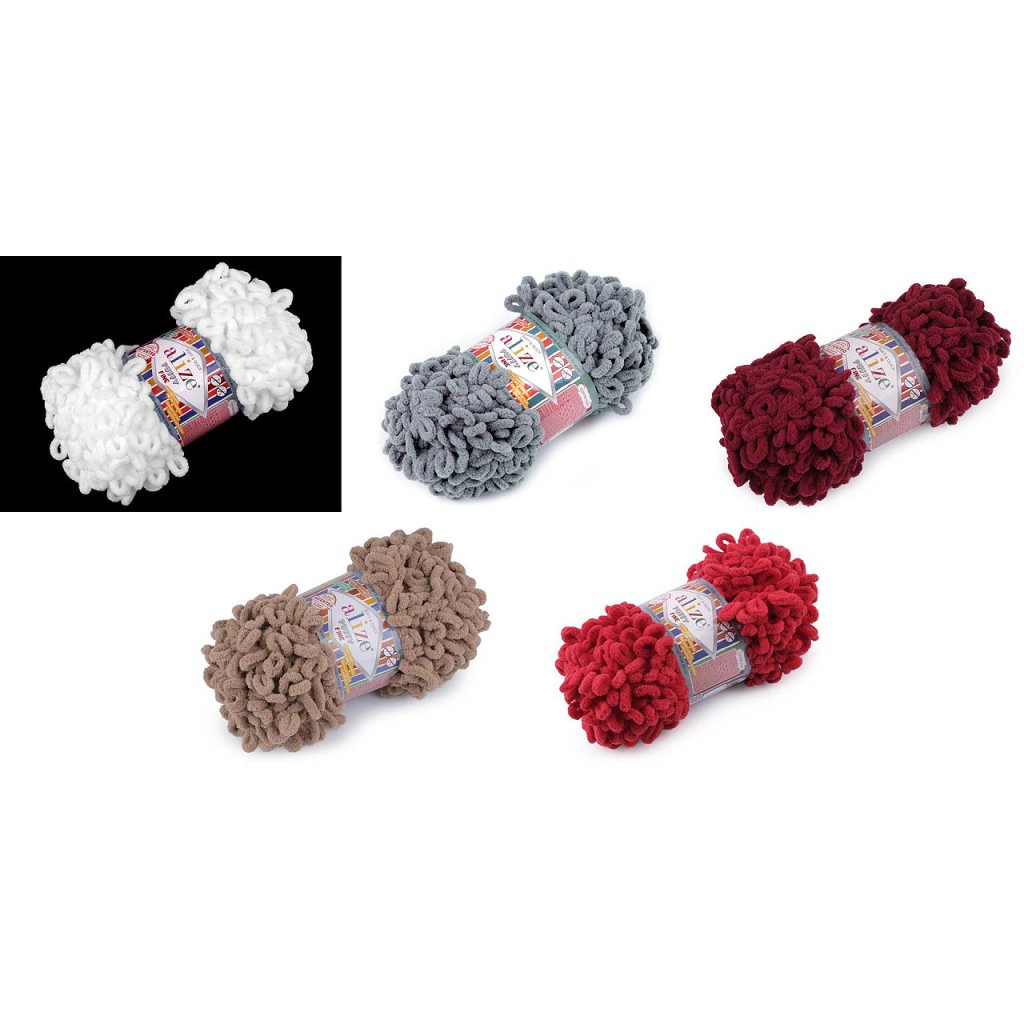 Příze Alize Puffy Fine je měkká, chlupatá žinylková příze s velkými očky. Na pletení nepotřebujete jehlice ani háček - proplétají se jednotlivá očka. Je vhodná na pletení dek, šálů apod.