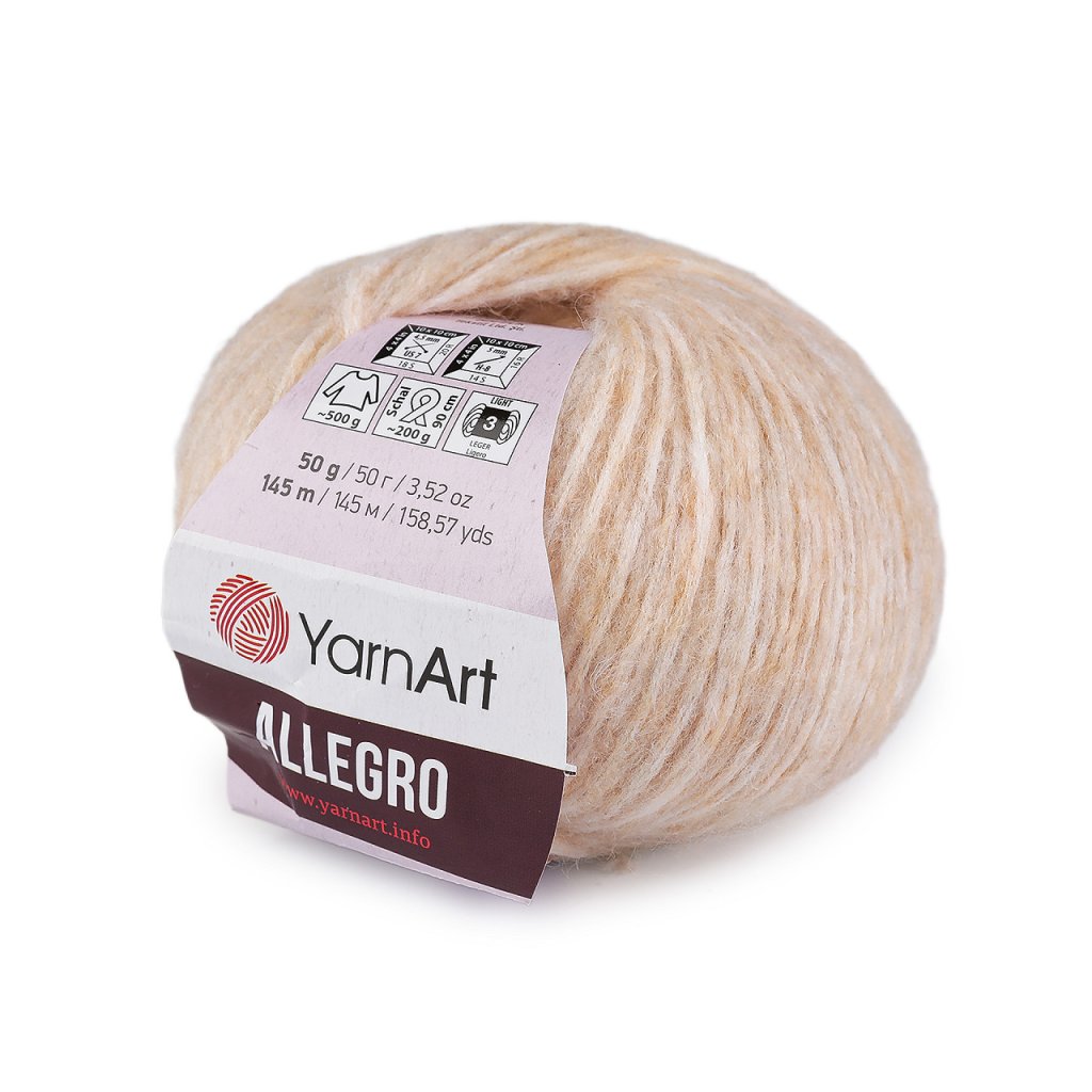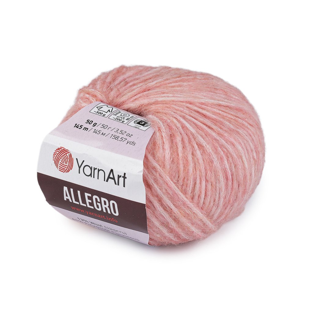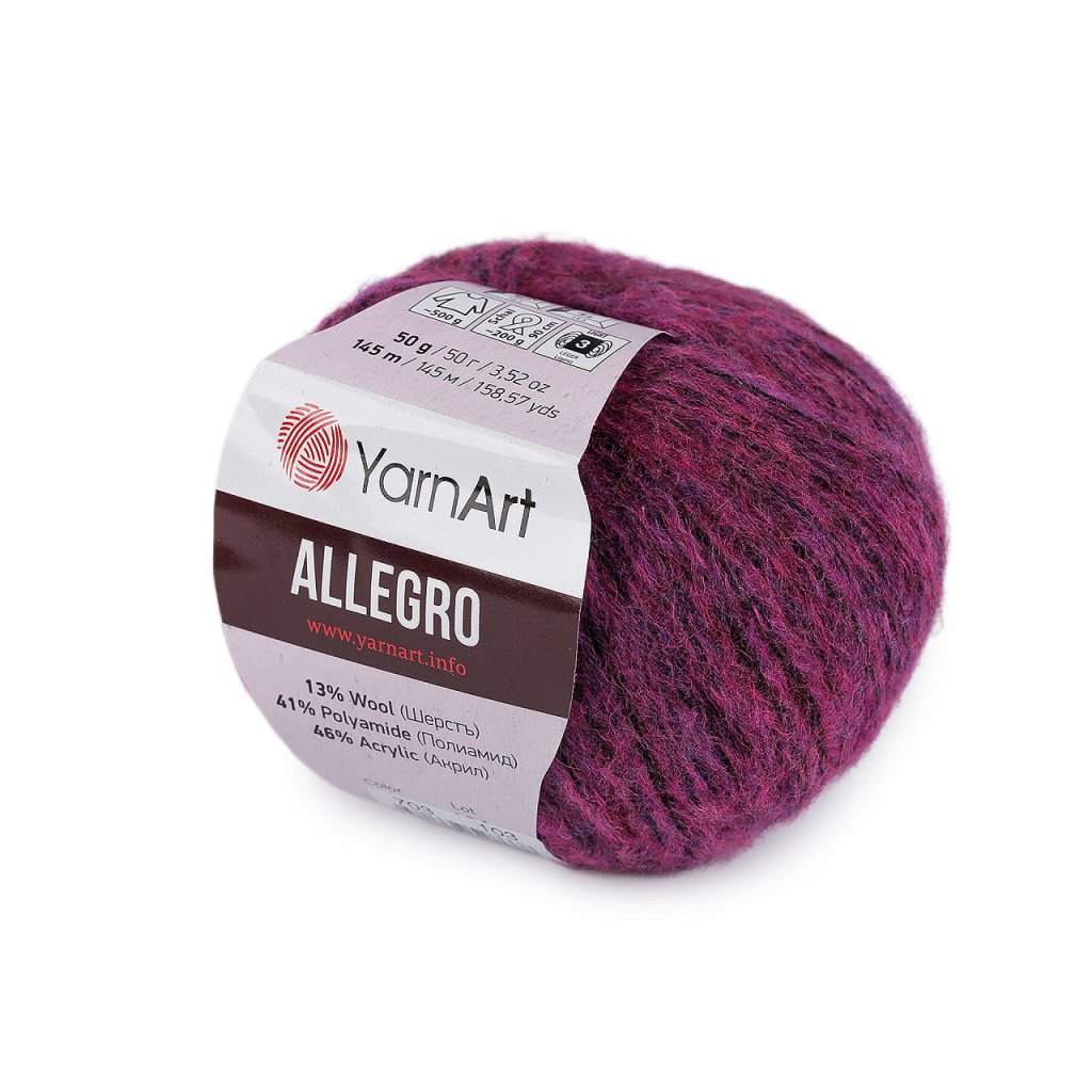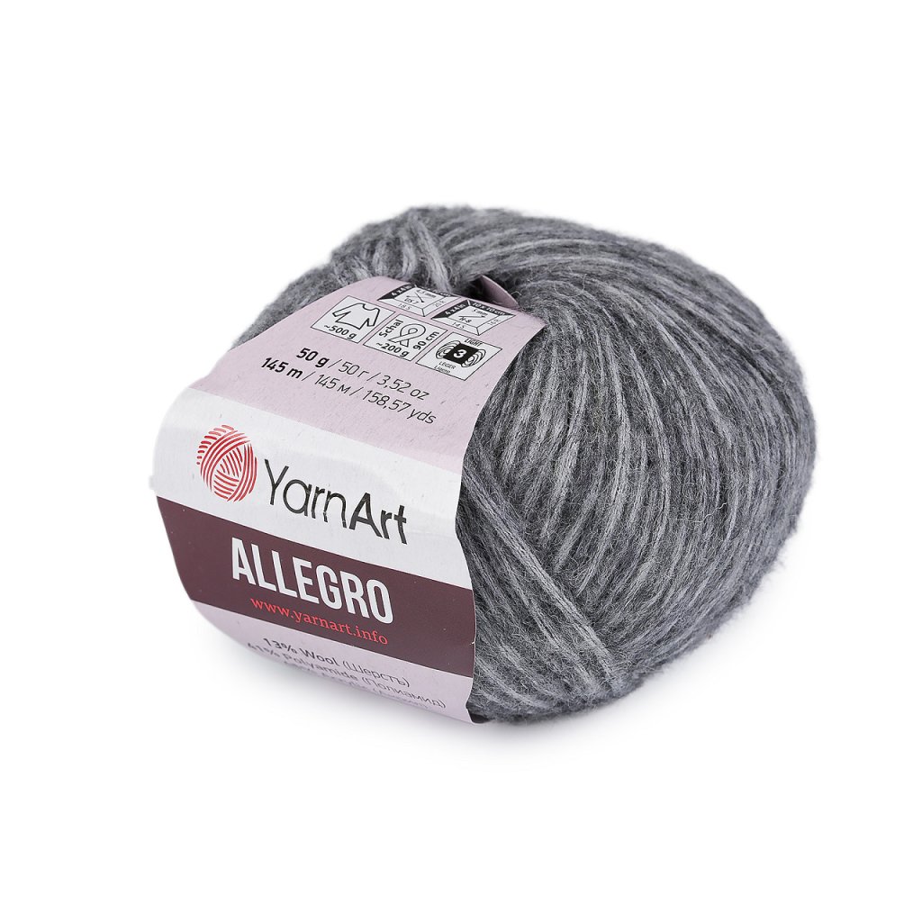 Příze Allegro je ideální na podzimní a jarní oděvy a doplňky. Je jemná a příjemná na dotek. Můžete z ní uplést či uháčkovat lehké svetry, šály, vesty, čepice, čelenky, plédy apod. Obsahuje podíl vlny.