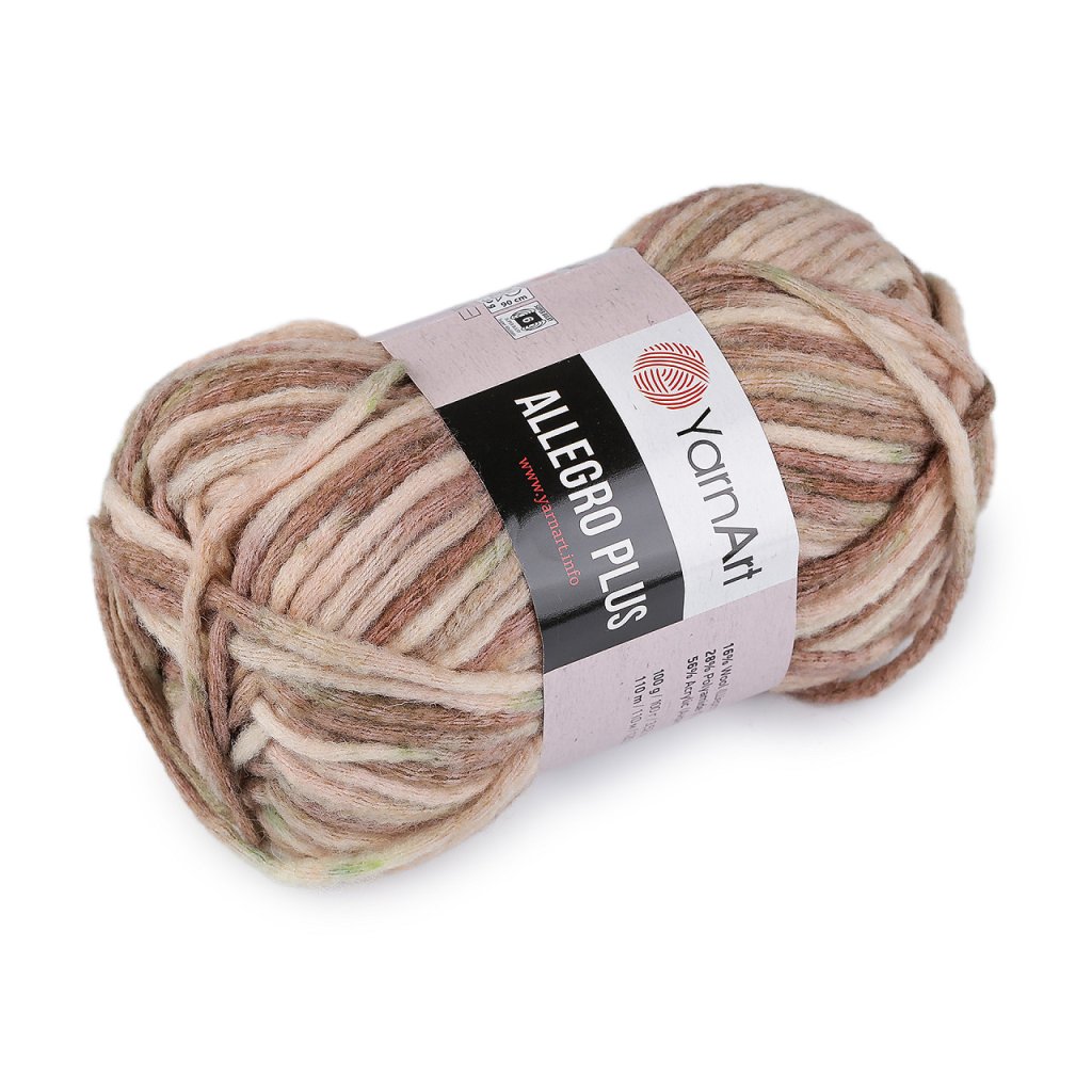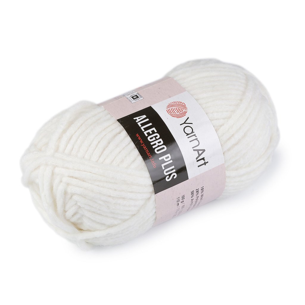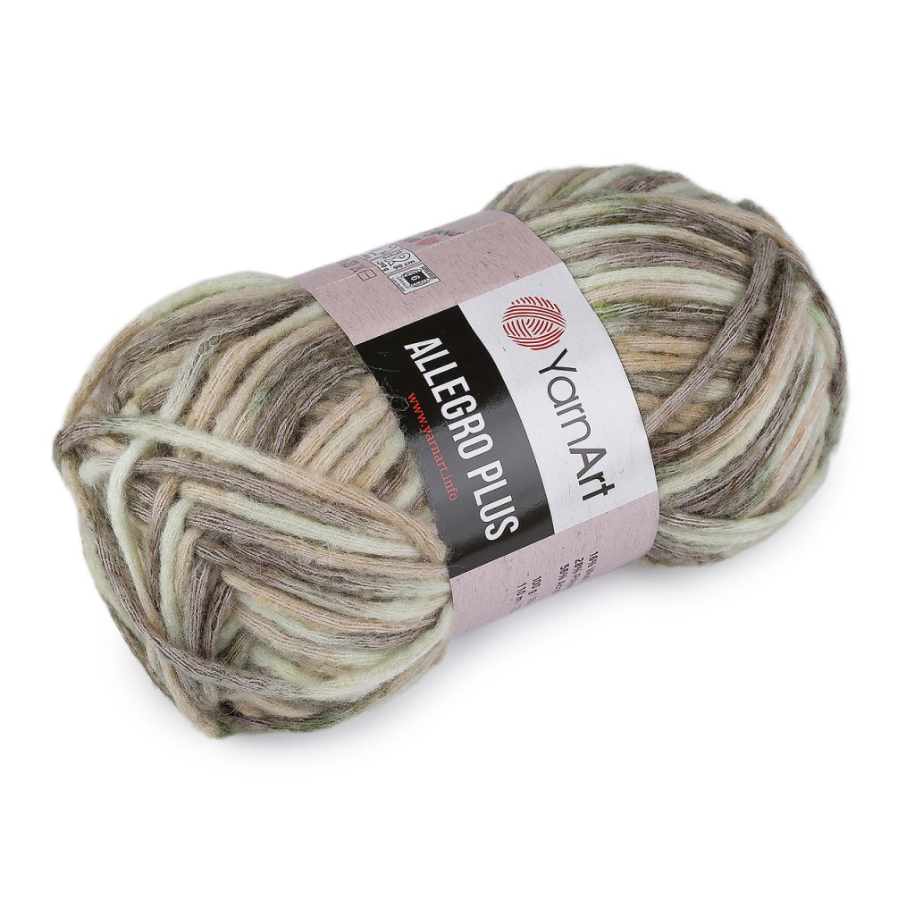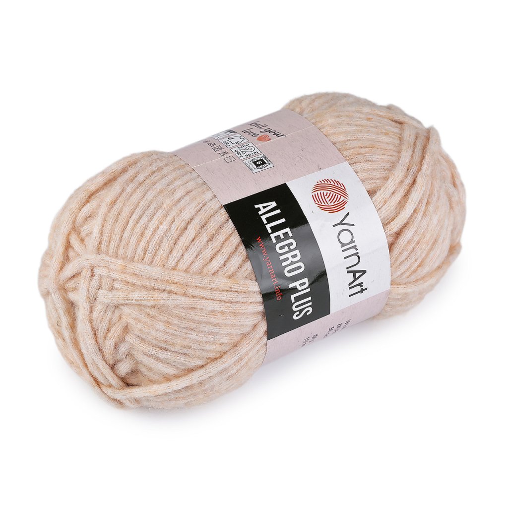 Příze Allegro plus je měkká, objemná a má nadýchanou texturu. Obsahuje podíl vlny. Můžete z ní vyrobit objemnější a hřejivé svetry, šály, vesty, čepice, plédy apod.