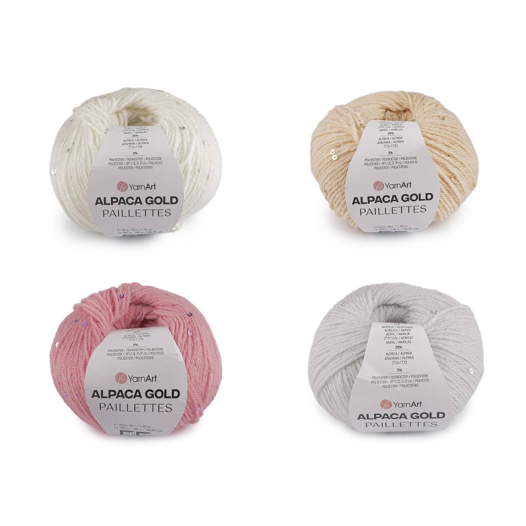 Pletací příze Alpaca gold paillettes s flitry je vhodná na pletení a háčkování svetrů, čepic, šálů apod. Díky podílu vlny hřeje.