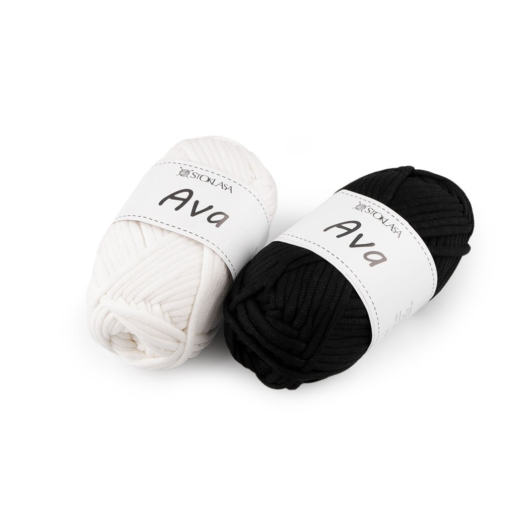 Pletací příze Ava je měkká a příjemná na dotek. Uvnitř je vyplněná dutým vláknem. Skvěle se hodí na pletení a háčkování tašek a košíků, protože hezky drží tvar.