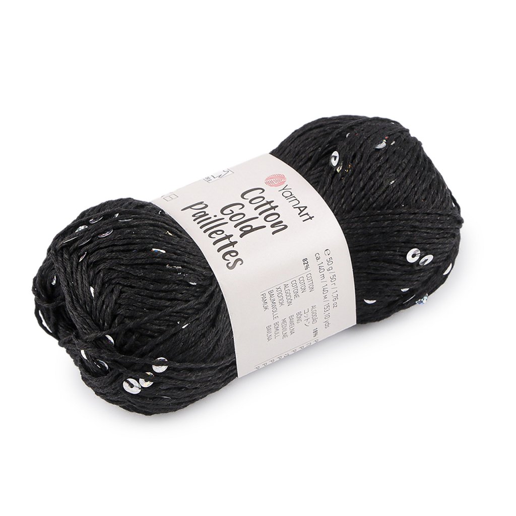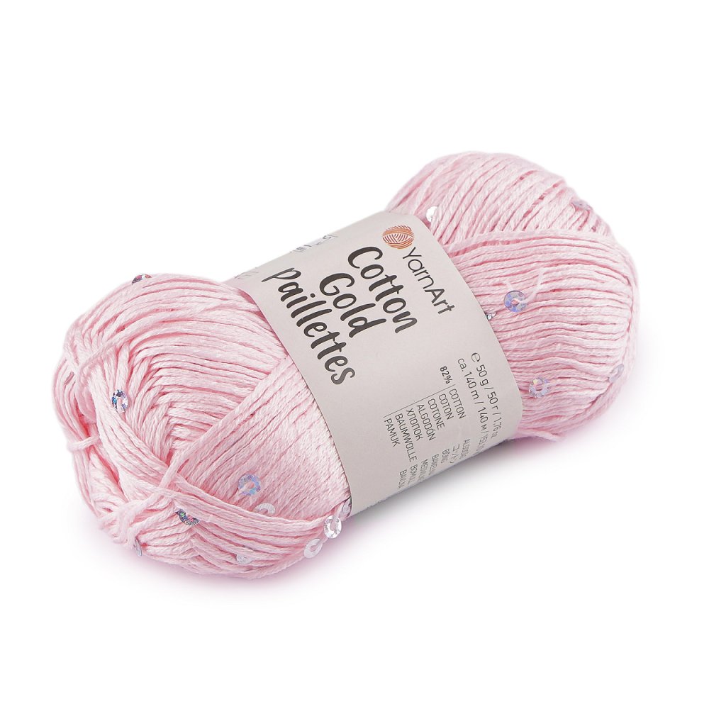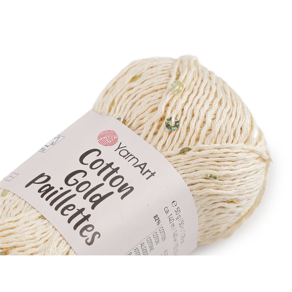 Pletací příze Cotton gold paillettes s flitry je vhodná na pletení a háčkování svetrů, čepic, šálů, párty outfitů apod. Díky vysokému podílu bavlny je měkká a příjemná na dotek.