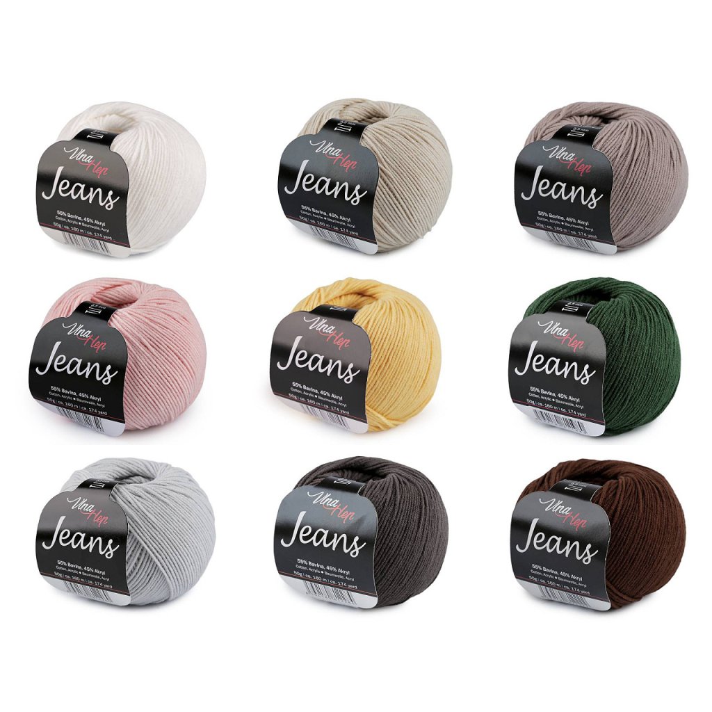 Pletací příze Jeans je příjemná na dotek. Její jemná textura je ideální pro vytváření pohodlných a prodyšných oděvů či doplňků. Využijete ji na pletení či háčkování hraček, lehkých svetrů, čepic nebo ponožek.