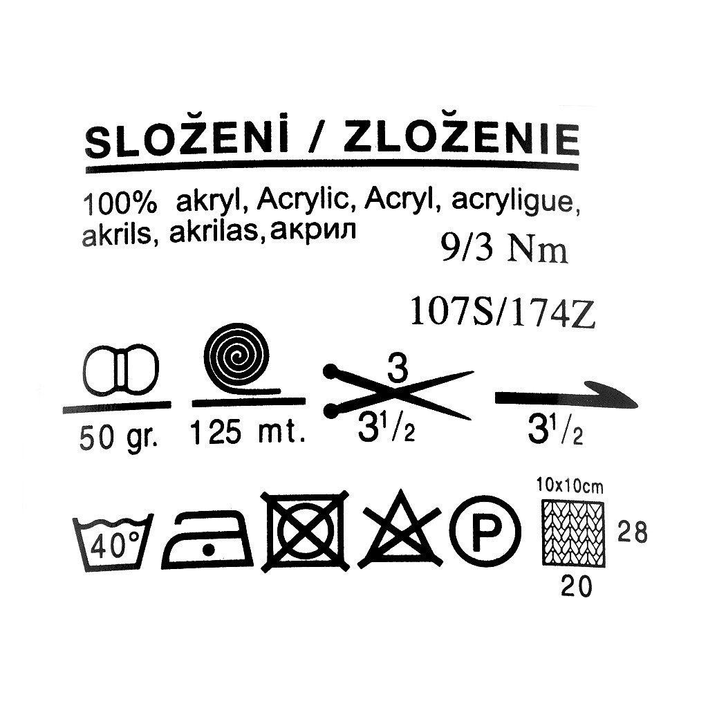 Oblíbená pletací příze, která je vyrobena ze 100% akrylu. Je příjemná a měkká na omak. Je vhodná k pletení a háčkování např. svetrů, ponožek, čepic, šál atd.