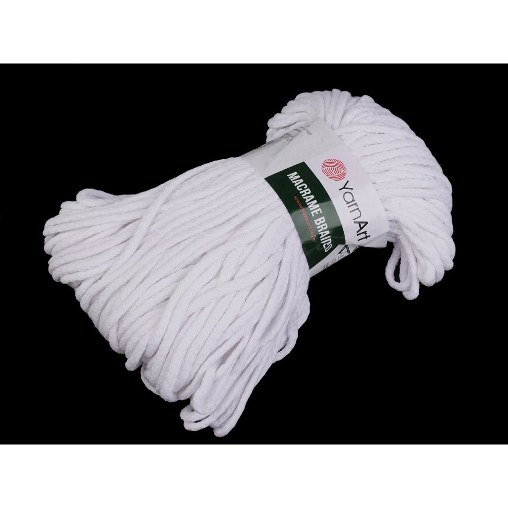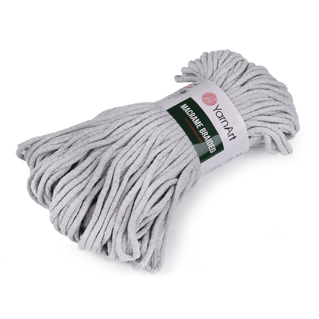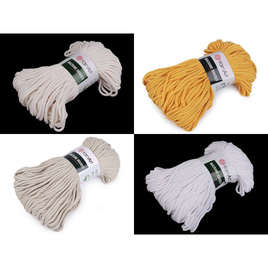 Příze Macrame Braided připomíná provázek. Využijete ji na pletení nebo háčkování pufů, košíků, koberečků i tašek. Je vhodná také na výrobu dekorací technikou drhání (macramé).