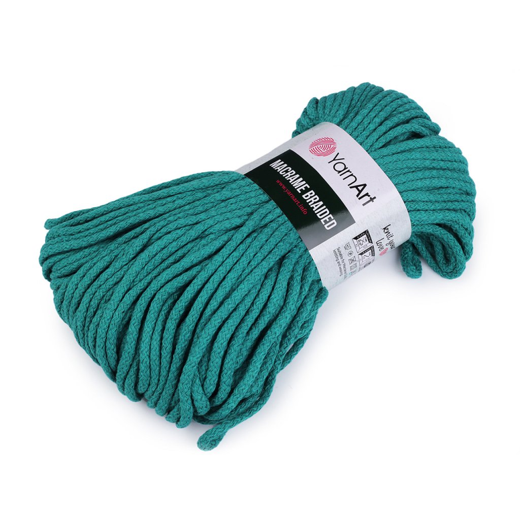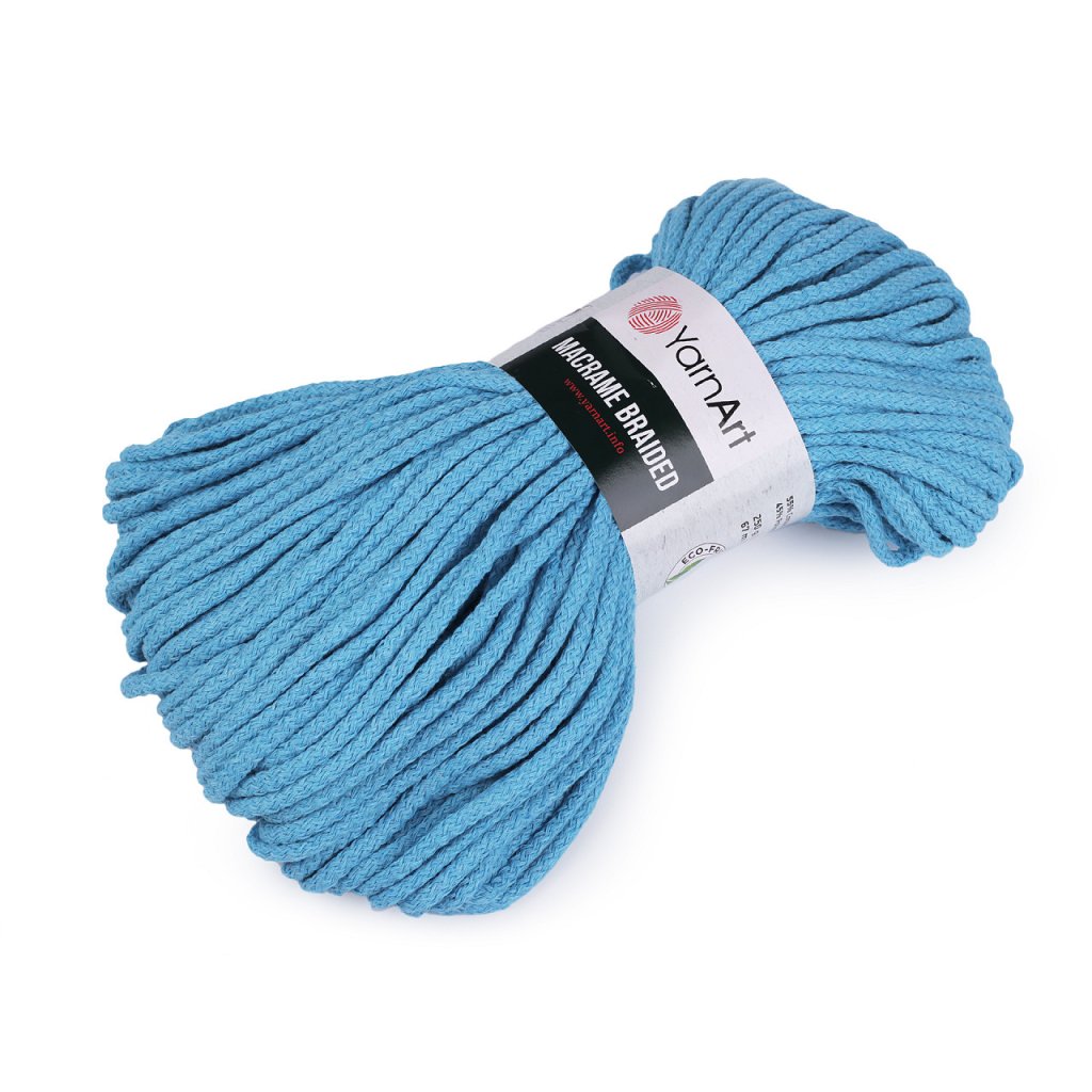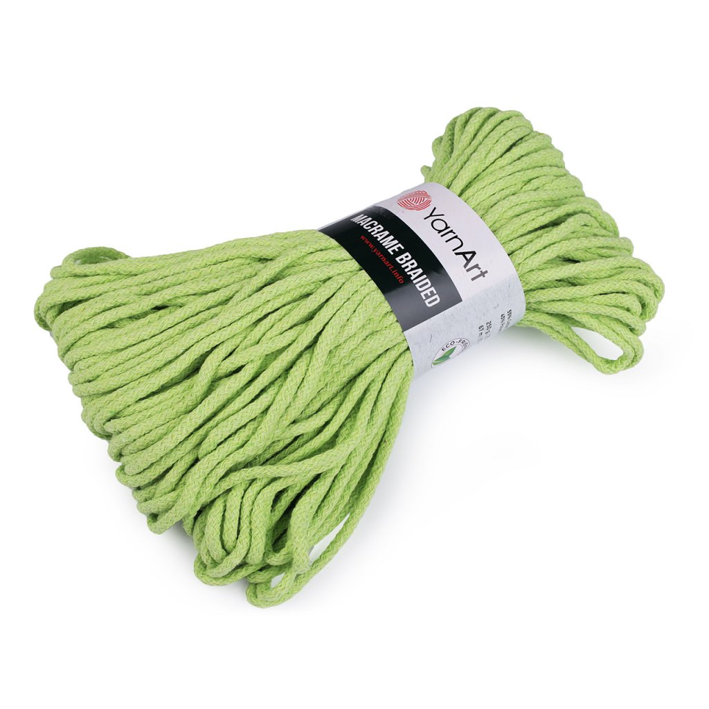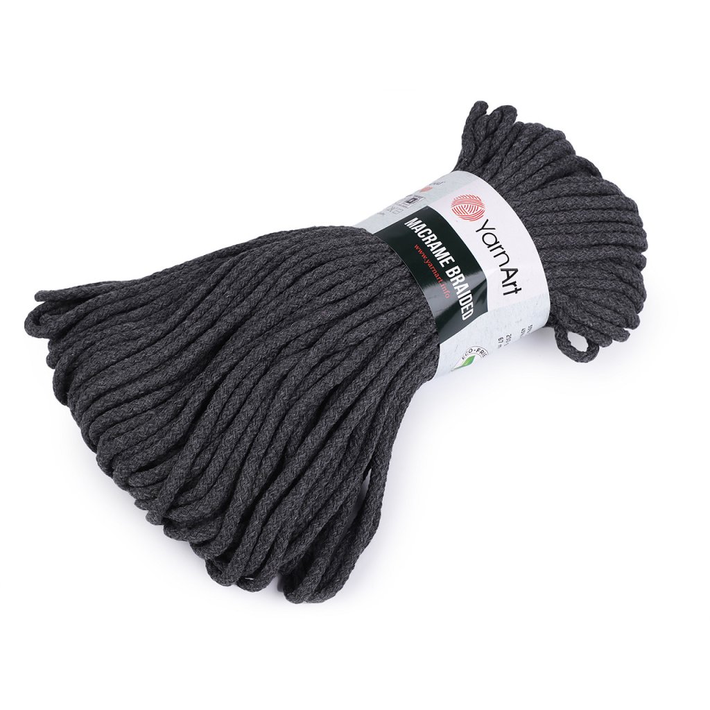 Příze Macrame Braided připomíná provázek. Využijete ji na pletení nebo háčkování pufů, košíků, koberečků i tašek. Je vhodná také na výrobu dekorací technikou drhání (macramé).