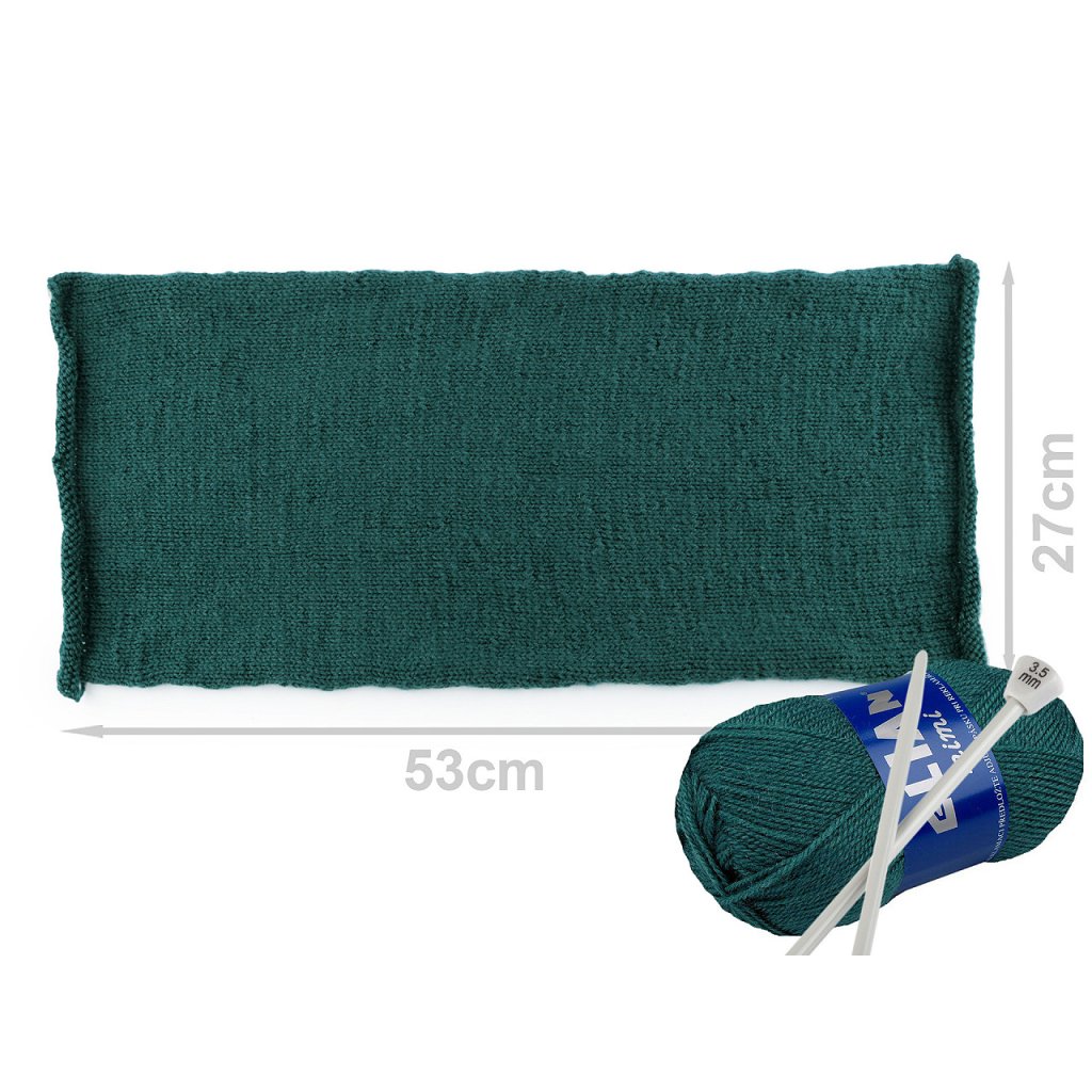Vzorek na fotografii (53 x 27 cm) byl upleten z 1 klubíčka, jehlicemi č. 3,5.
