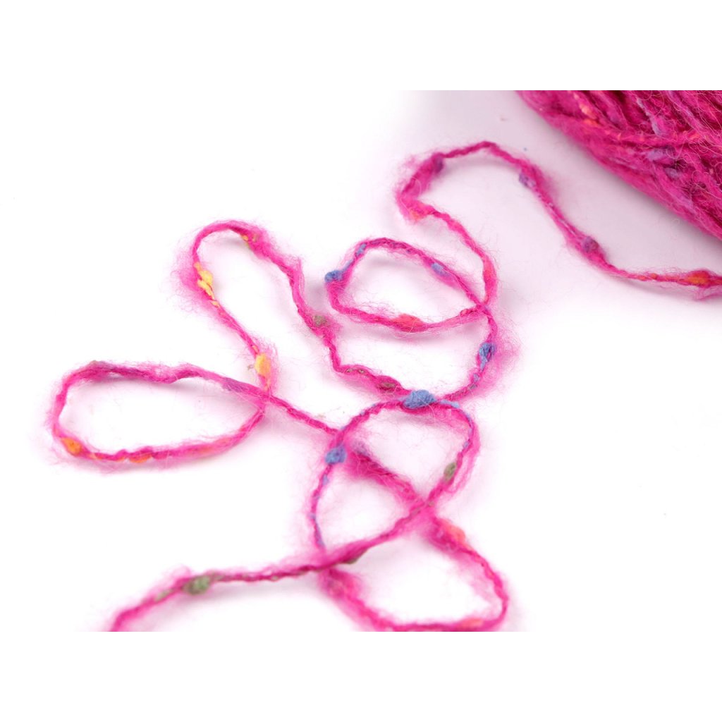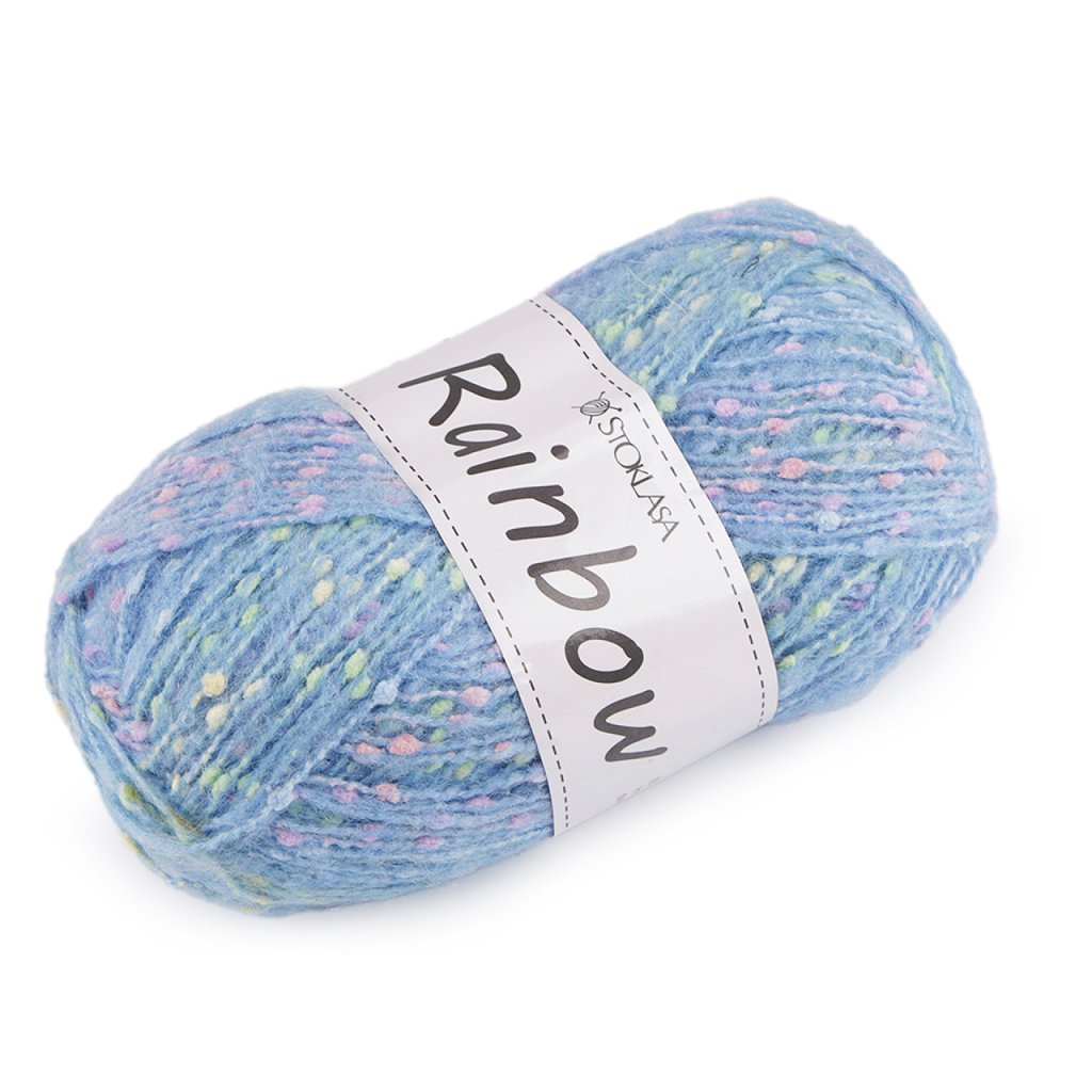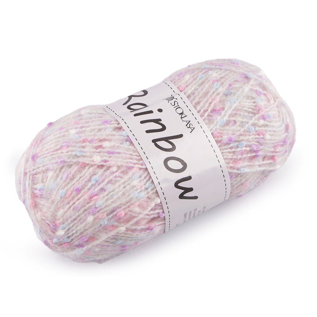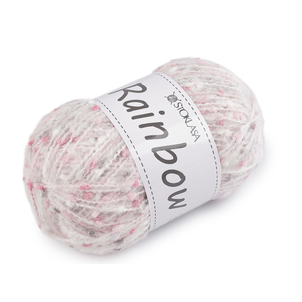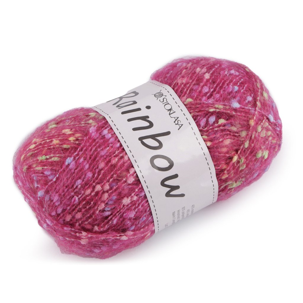 Příze Rainbow s vysokým podílem mohéru a vlny vás v chladném období zahřeje. Efektně na ní vypadají drobné barevné bambulky z žinylky. Přízi využijete na pletení či háčkování svetrů, šálů, ponožek nebo čepic.