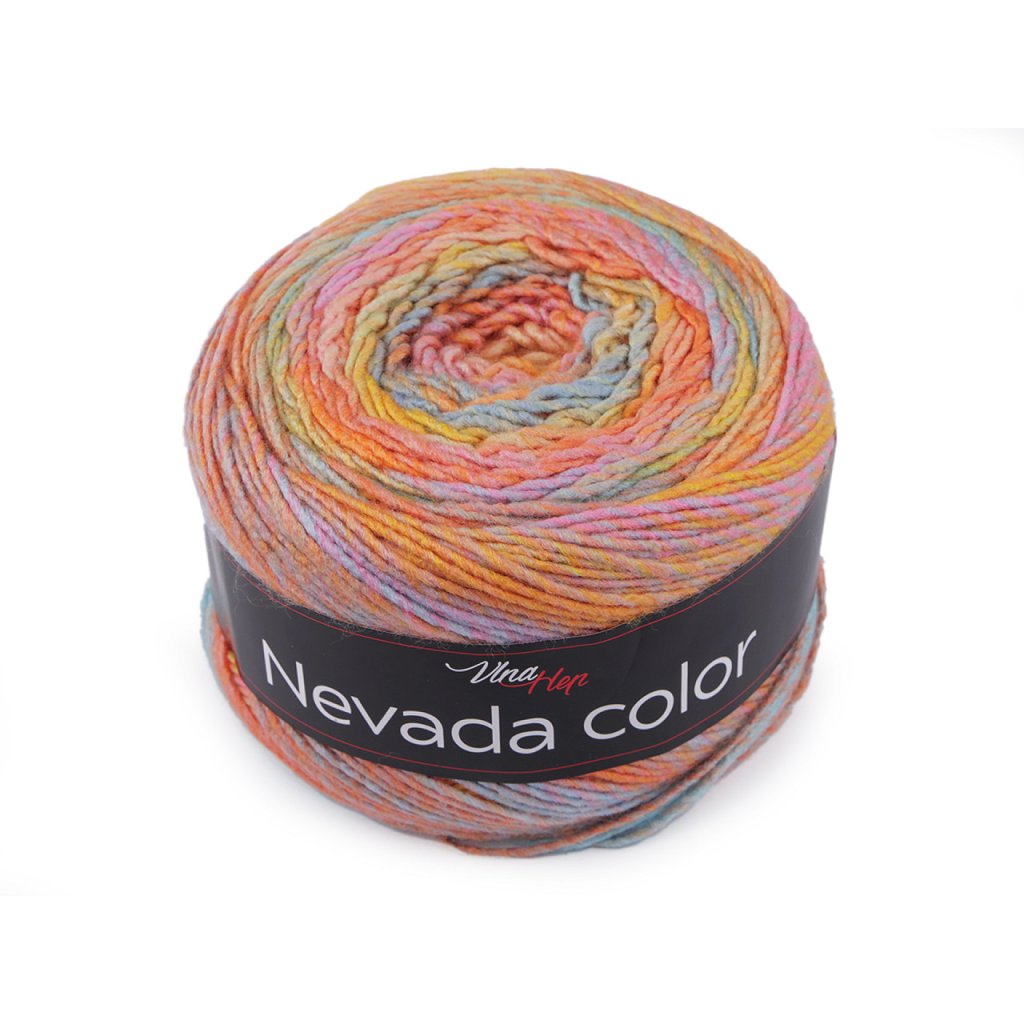 S pletací přízí Nevada color vytvoříte díky melírovanému zabarvení zajímavé výrobky. Je vhodná na pletení či háčkování svetrů, šálů, hřejivých ponožek, čepic apod.