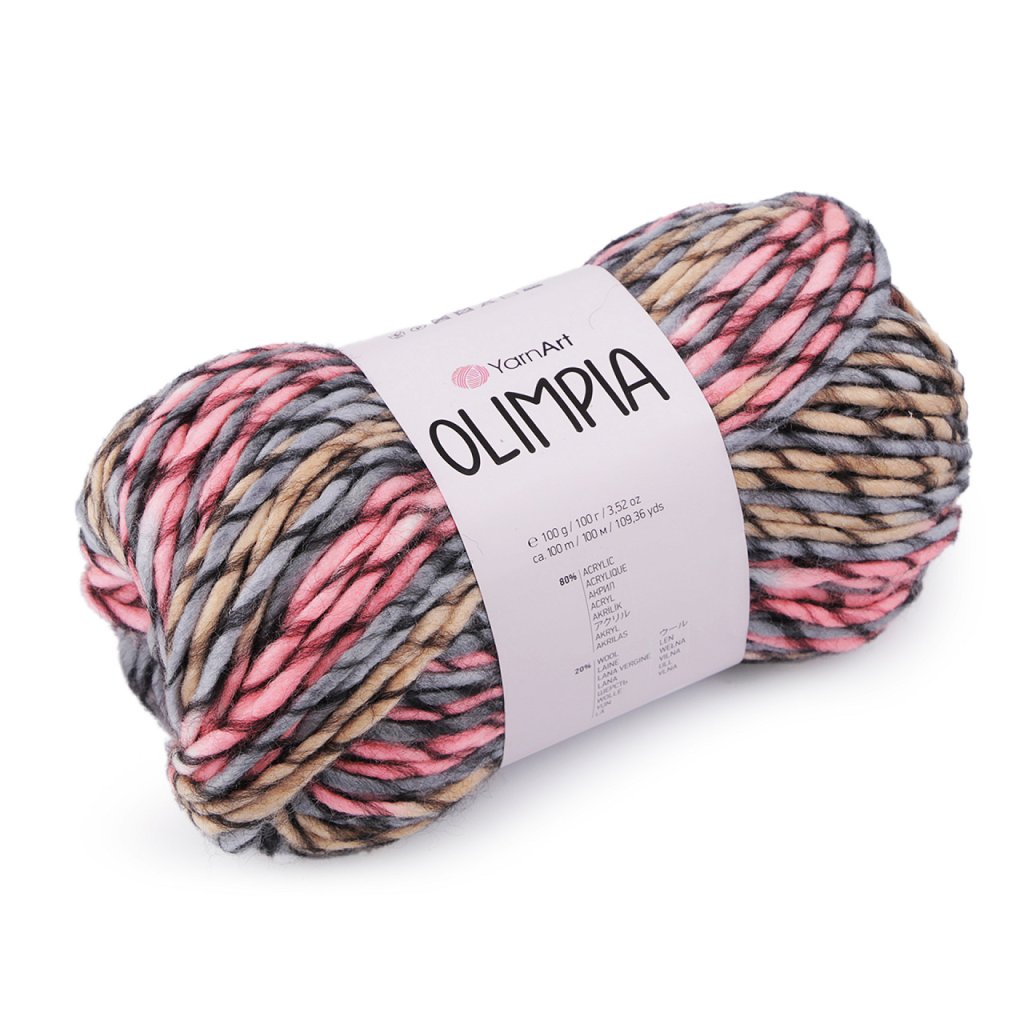 Příze Olimpia vyniká melírovaným efektem, který ozvláštní všechny výrobky. Díky podílu vlny i zahřeje. Můžete z ní uplést či uháčkovat svetry, šály, vesty, hřejivé ponožky, čepice apod.