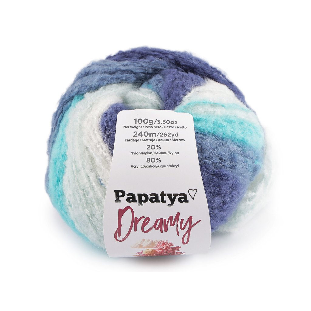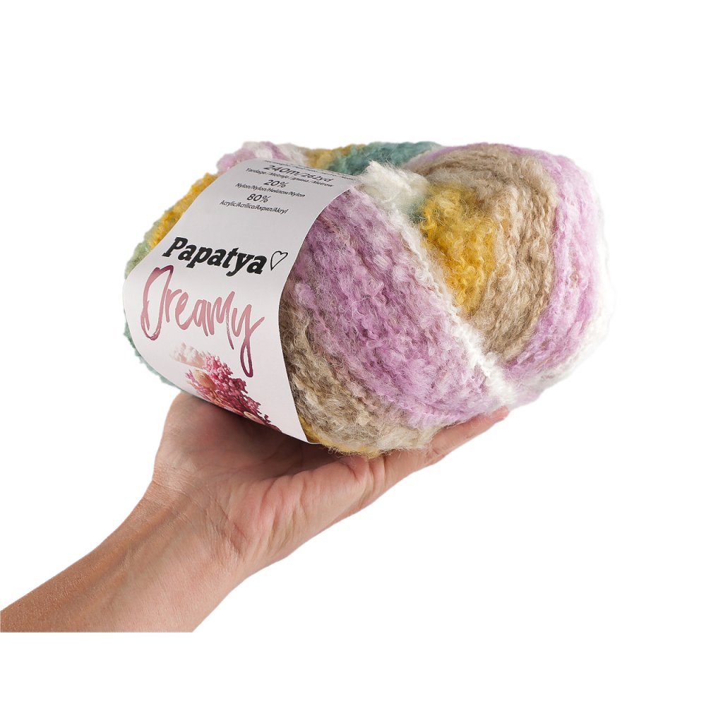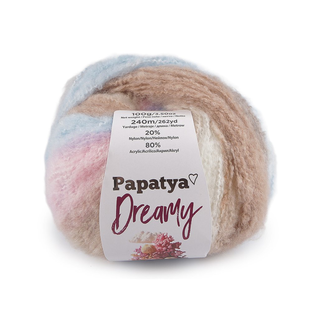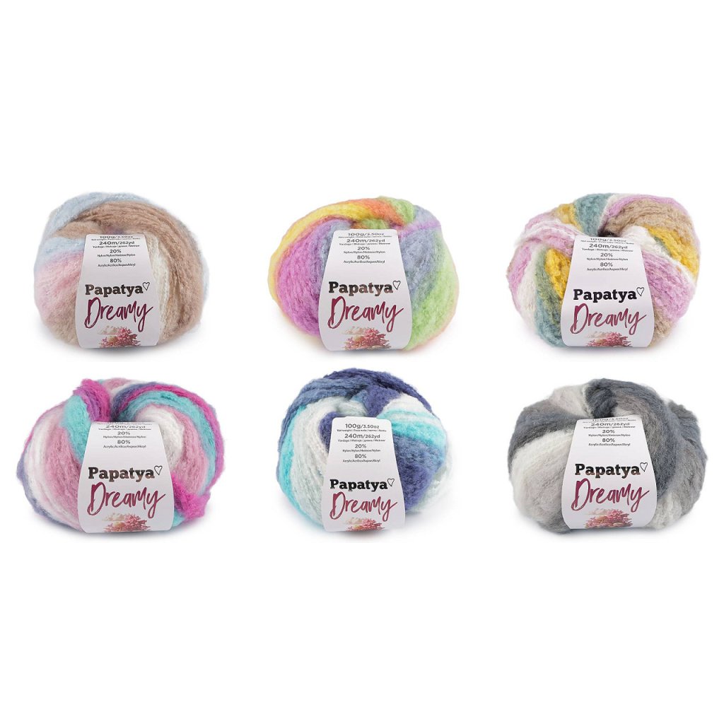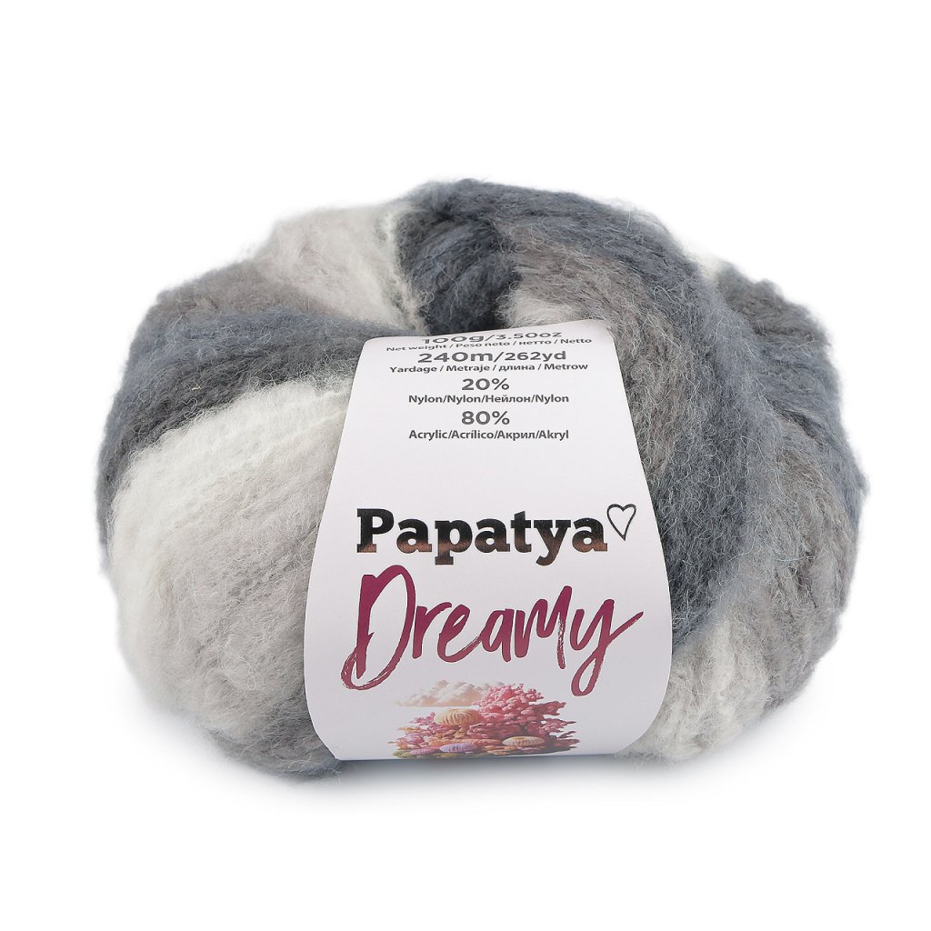Melírovaná příze Papatya Dreamy dodá vašim výrobkům měkký a nadýchaný vzhled. Je velmi příjemná na dotek. Skvěle se hodí na pletení a háčkování čepic, šálů, svetrů, vest apod.