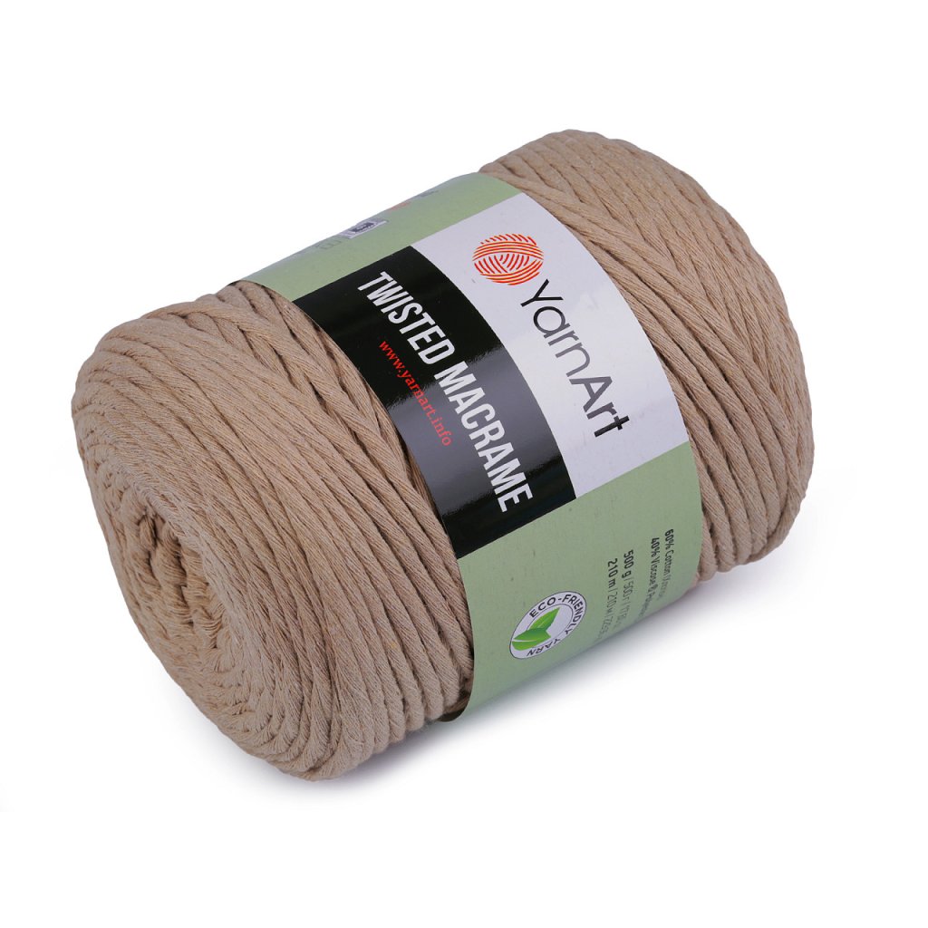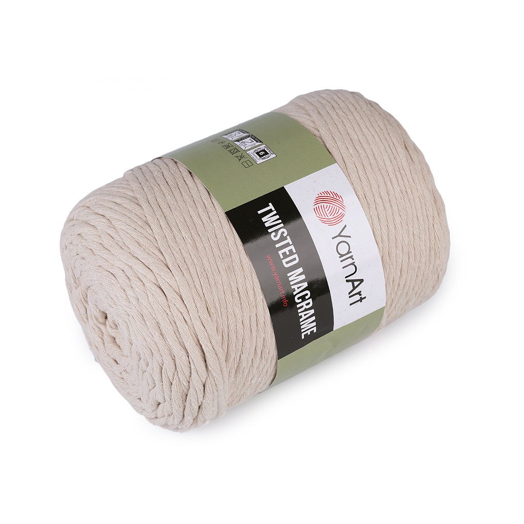 Příze Twisted Macrame je kroucená a připomíná provázek. Využijete ji na pletení nebo háčkování pufů, košíků, koberečků i tašek. Je vhodná také na výrobu macramé dekorací.