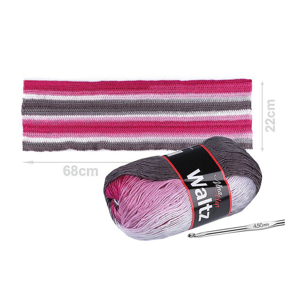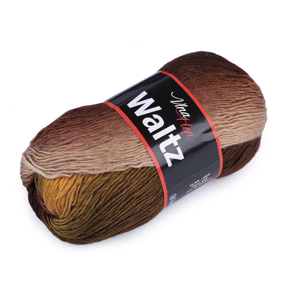 Příze Waltz si vás získá svým barevným efektem. Materiál je velice příjemný a měkký. Z příze můžete uplést či uháčkovat svetry, šály, čepice, rukavice, plédy apod.