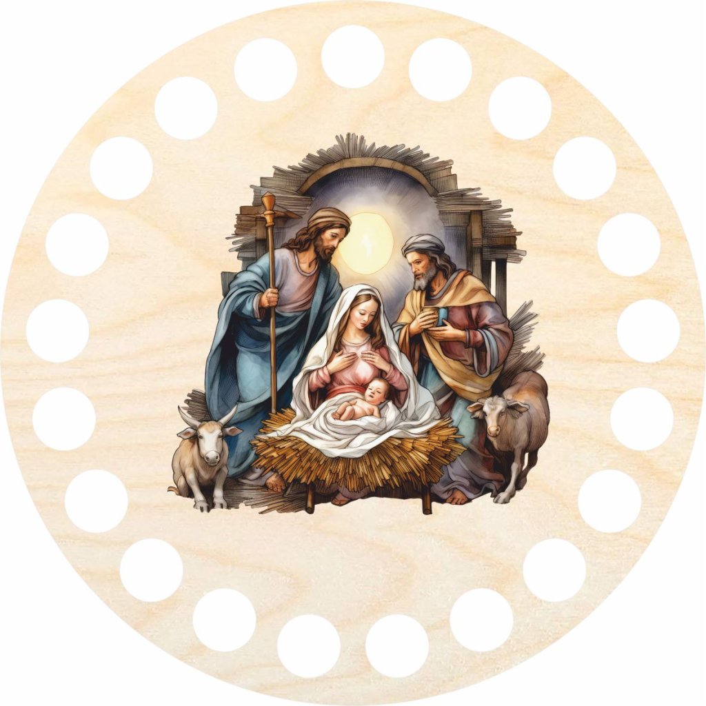 Víko pro košíky vyráběné ze špagetových přízí. Lze také použít na výrobu podtácků. Motiv je vytištěn UV tiskárnou na víčko z březové překližky.