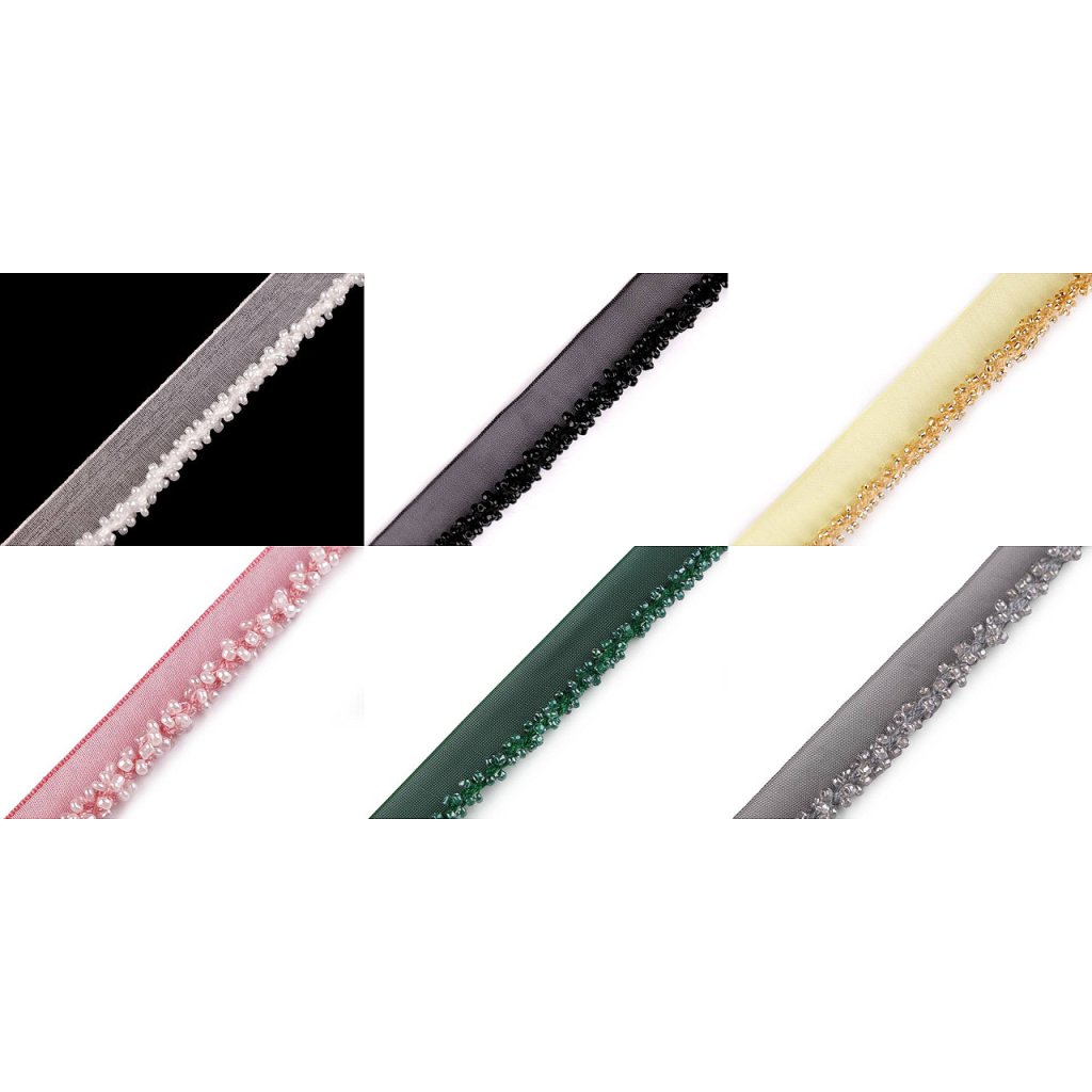Paspulka se skleněným rokajlem dodá vašemu oděvu nádech elegance. Využijete ji k ozdobení lemů či švů. Korálky jsou přišité na monofilovém základě. Paspulka vynikne na společenských a plesových šatech, halenkách, sukních, kostýmech i módních doplňcích, jako jsou slavnostní psaníčka, obuv apod.