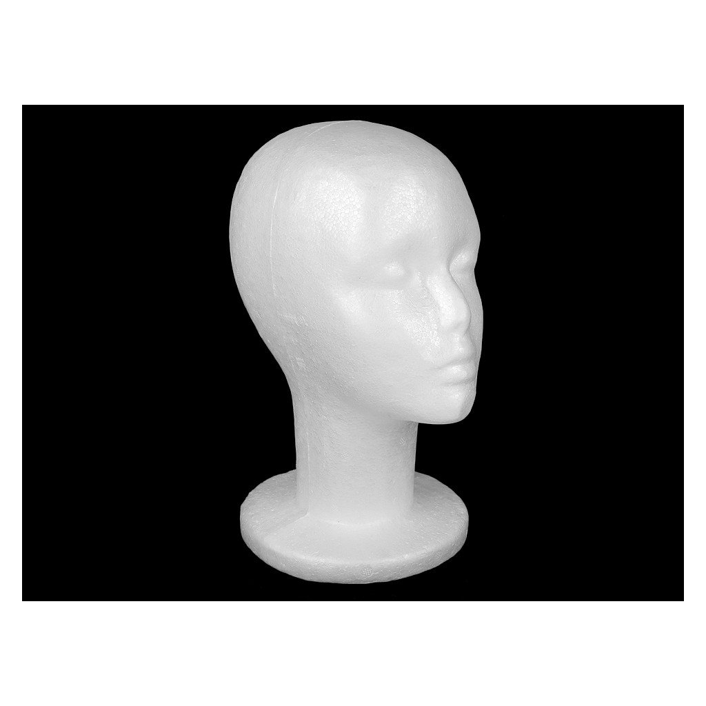 Polystyrenová hlava je vhodná k aranžování paruk, čepic, klobouků nebo šátků. Hlavu využijete převážně na prodejnách.