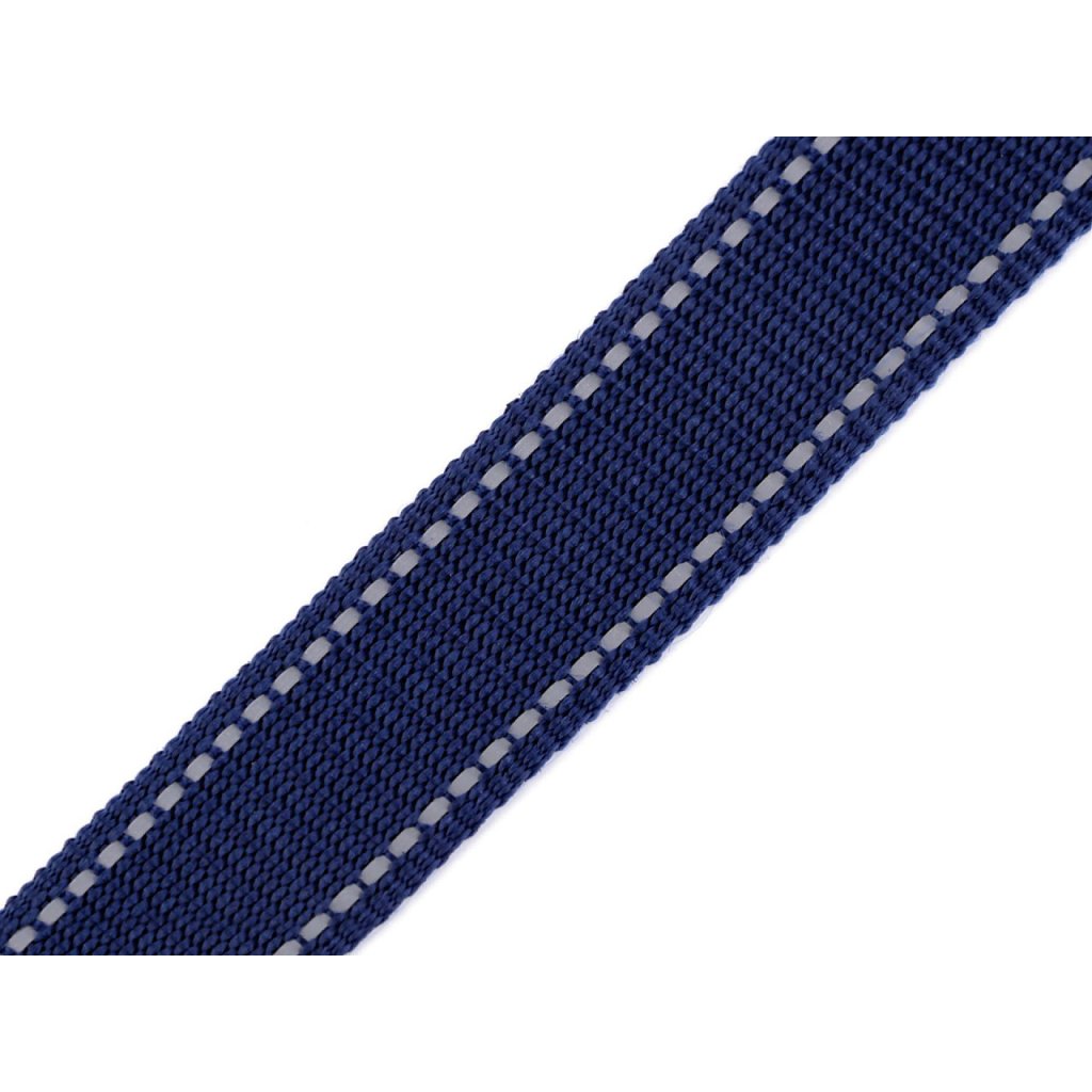 Polypropylenový popruh je po stranách zdobený reflexním prošitím, které zajišťuje dobrou viditelnost. Popruh je pevný.