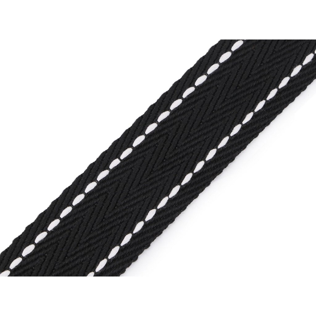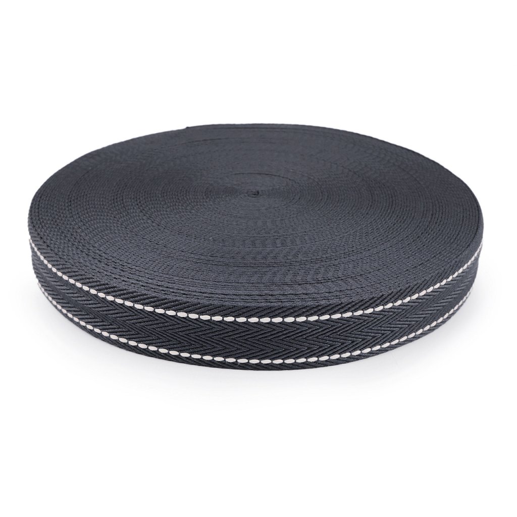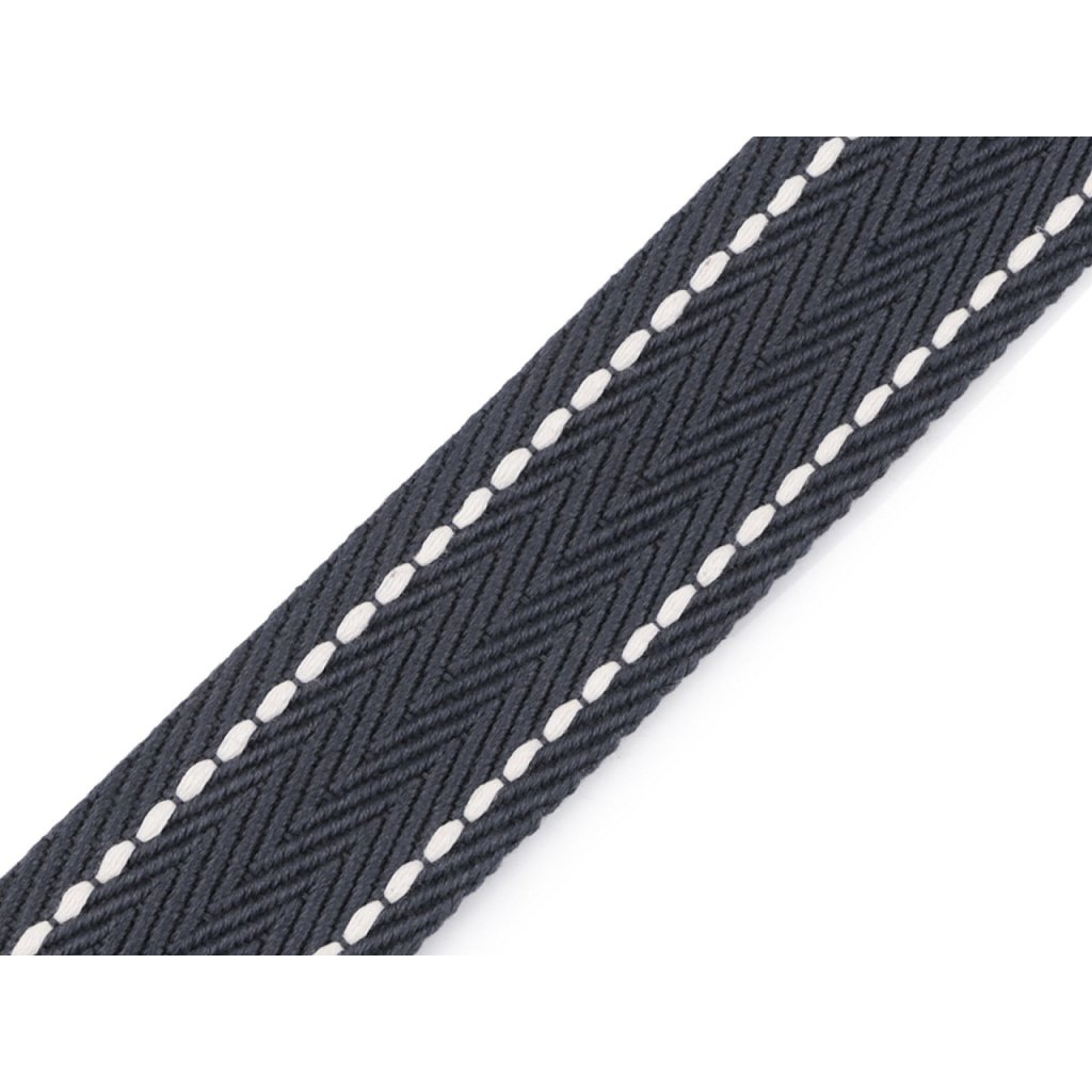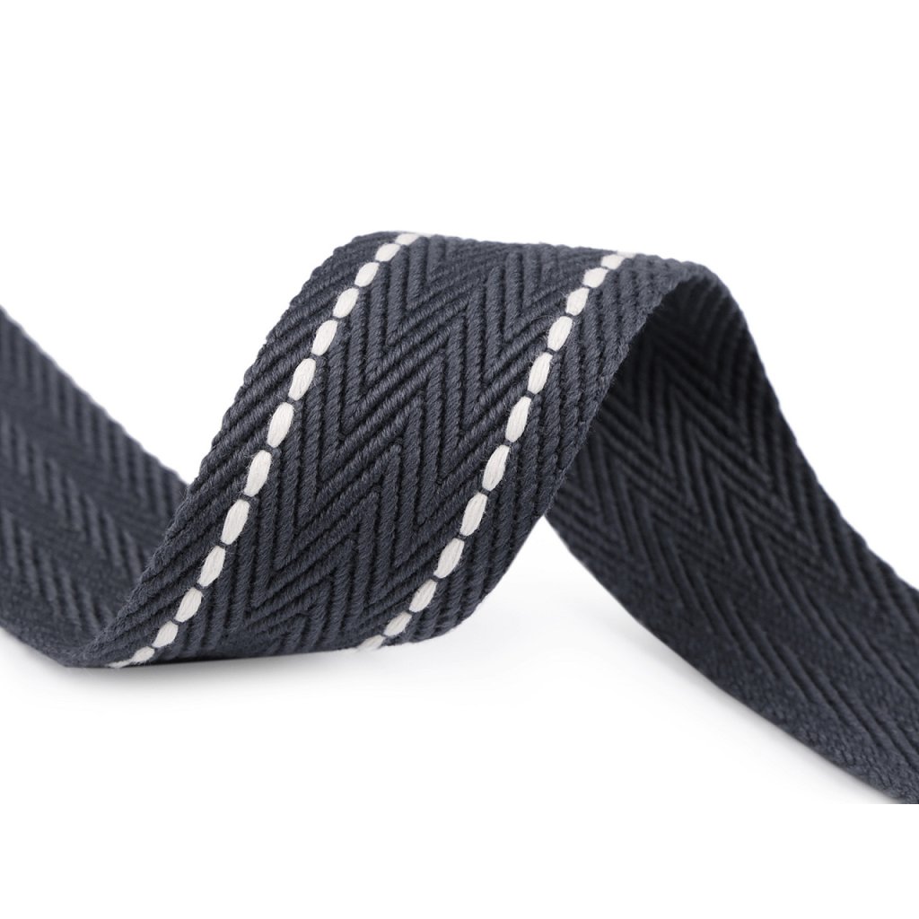 Textilní popruh lemovaný tenkými proužky po stranách je vhodný jako ucho na batohy, tašky i kabelky. Využijete ho také na výplety nábytku, lehátek, saní, lemování textilních výrobků nebo na výrobu opasků.