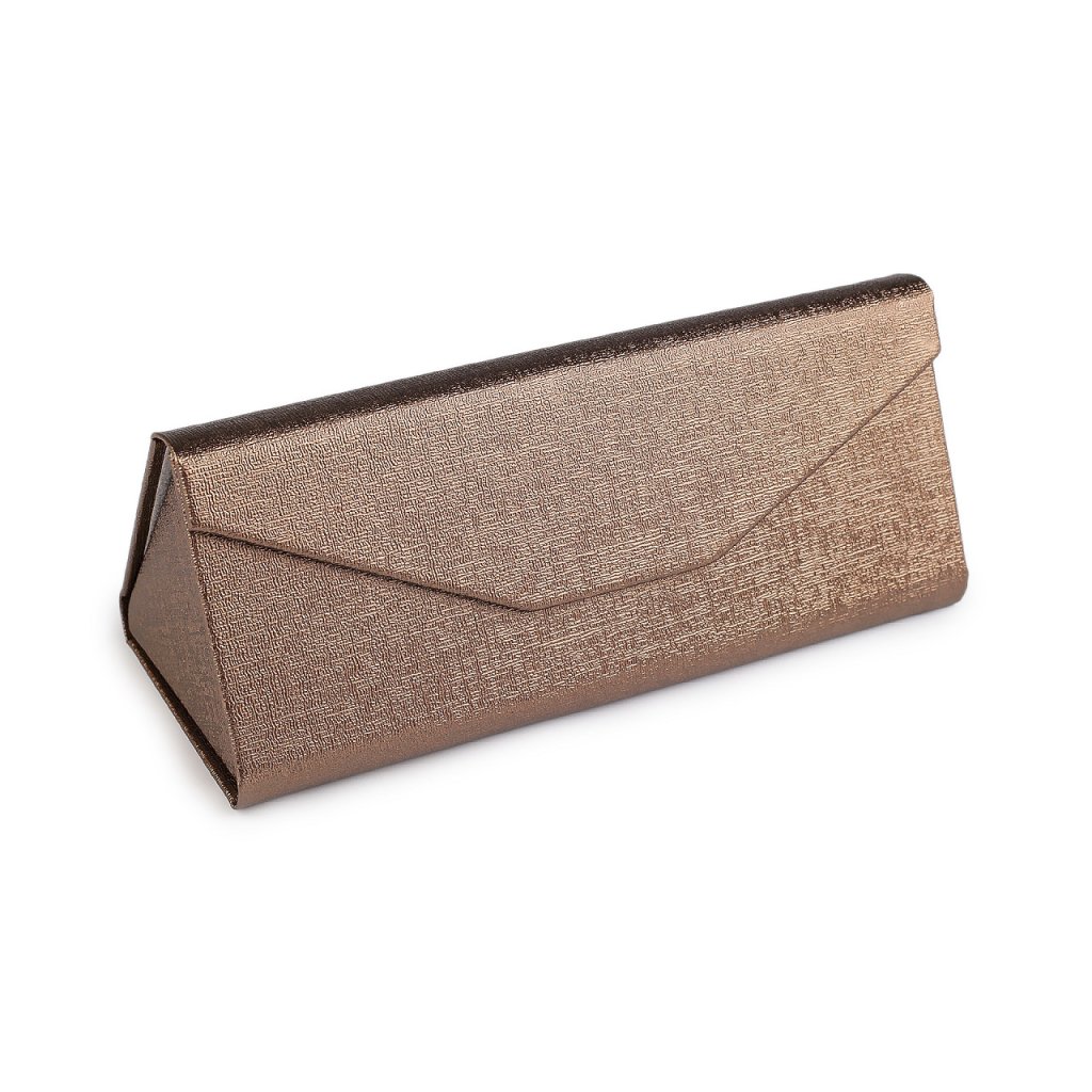 Skládací pouzdro na brýle je elegantní, trvanlivé a odolné, s magnetickým uzávěrem. Má zajímavý metalický lesk s jemnou povrchovou strukturou. Poskytne spolehlivý úložný prostor především dioptrickým brýlím. Uvnitř má podšívku z umělé kůže, která se postará o to, aby se brýle nepoškrábaly. Pokud pouzdro nepoužíváte, jednoduše jej složíte naplocho, v tašce nebo kapse vám nezabere místo.