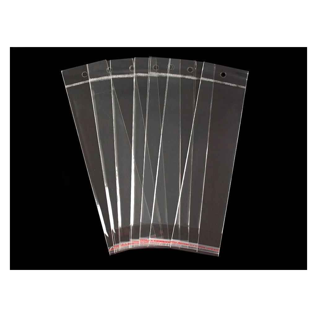 Dlouhé sáčky jsou vhodné především pro zabalení náhrdelníků a náramků. Jejich lesklý a hladký povrch ocení převážně zákazníci, kteří uvítají dobrou viditelnost zabaleného výrobku. Z jedné strany jsou sáčky opatřené lepicí lištou, díky které je snadno zalepíte i rozlepíte, a z druhé strany závěsem, abyste je mohli snadno zavěsit na viditelné místo. Sáčky vaše výrobky ochrání před poškrábáním, nánosem prachu, vzduchem atd.