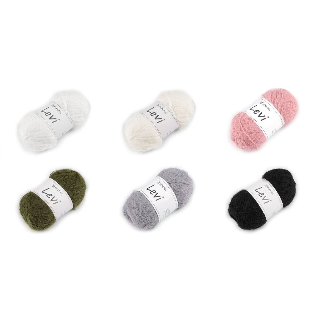 Tenká příze Levi je příjemná na dotek a zdobí ji jemný chloupek. Využijete ji pro připlétání do čepic, rukavic, svetrů, šálů, apod., ale i k háčkování malých postaviček, zvířátek a jiných dekorací.