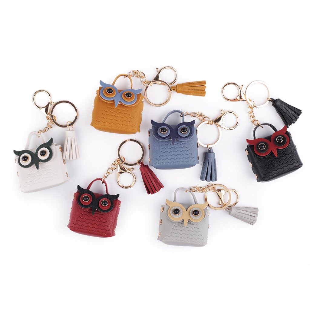Přívěsek malé soví kabelky je nejen krásný, ale i velice praktický. Je jako opravdová malá kabelka. Je vyrobená z eko kůže, můžete si do ní schovat drobné mince, bonbon a podobné maličkosti na přežití. Klopa se zapíná na patent. Kabelka originálně dozdobí klíčenky, batohy, tašky apod.