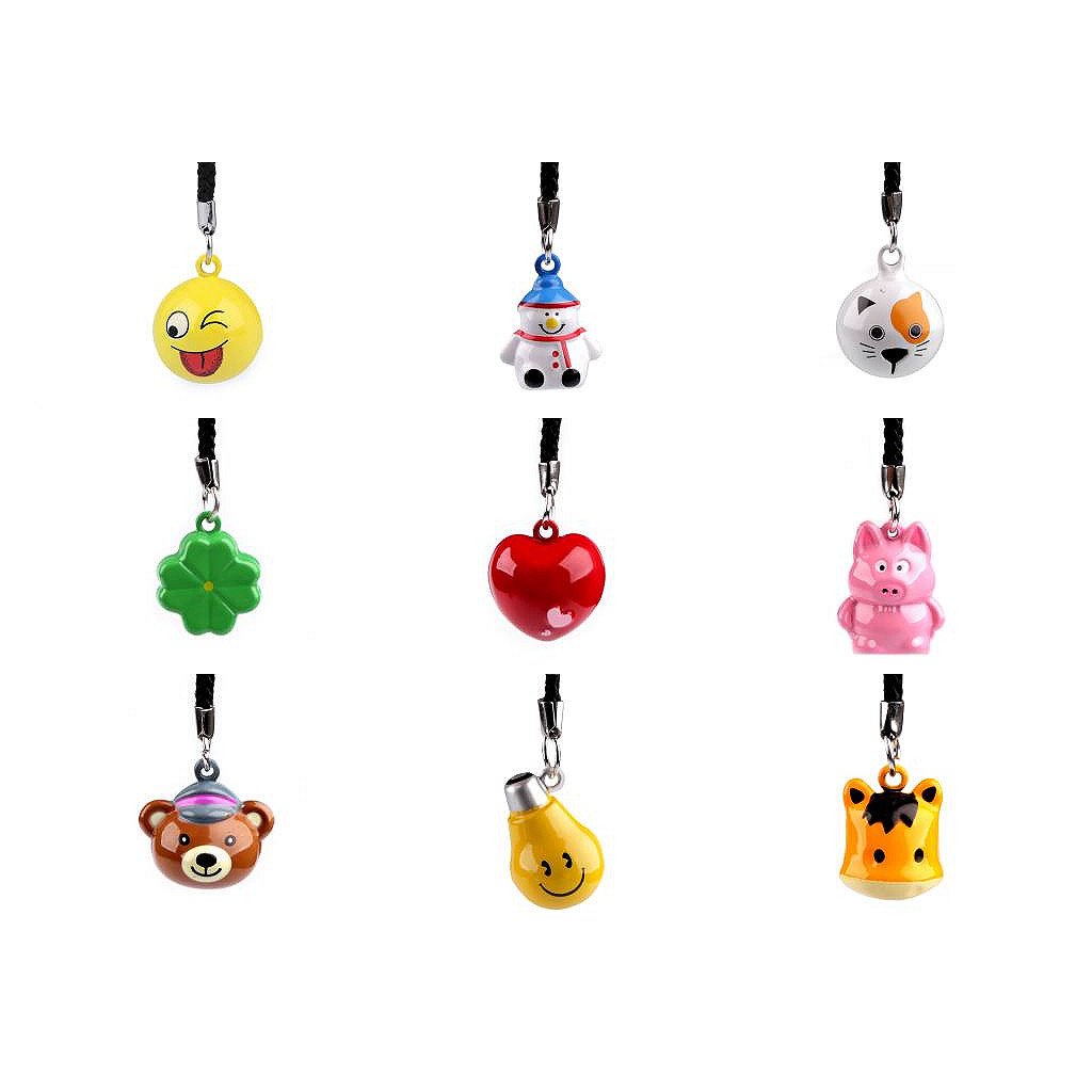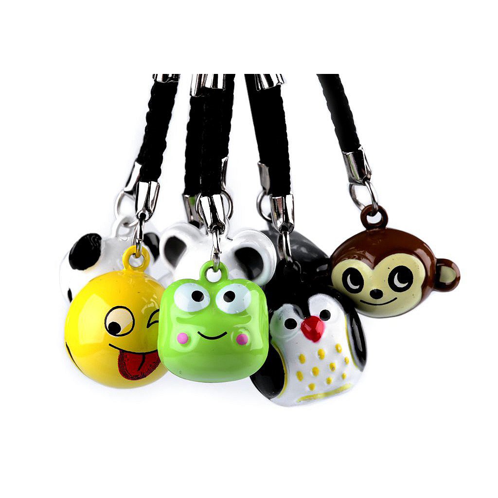 Přívěsek na klíče rolnička tučňák, panda, smajlík, myš, opice
