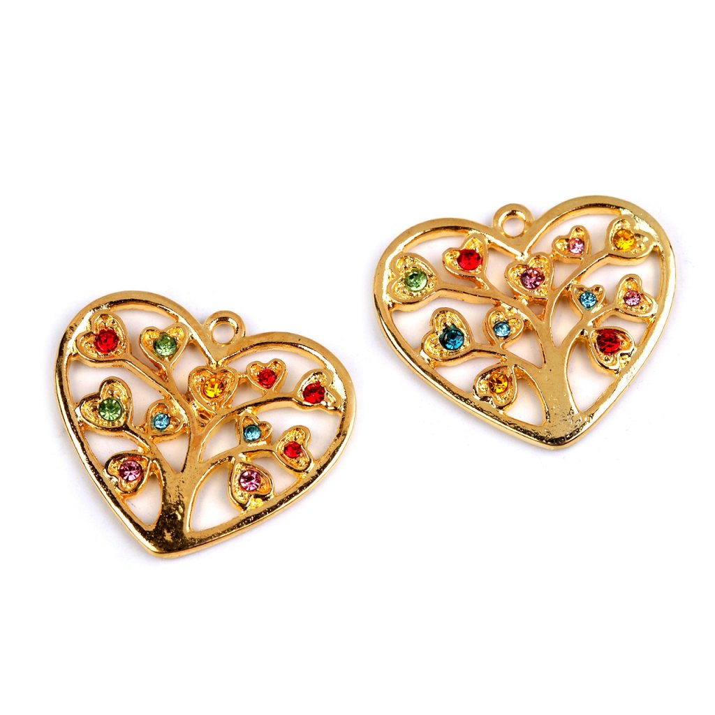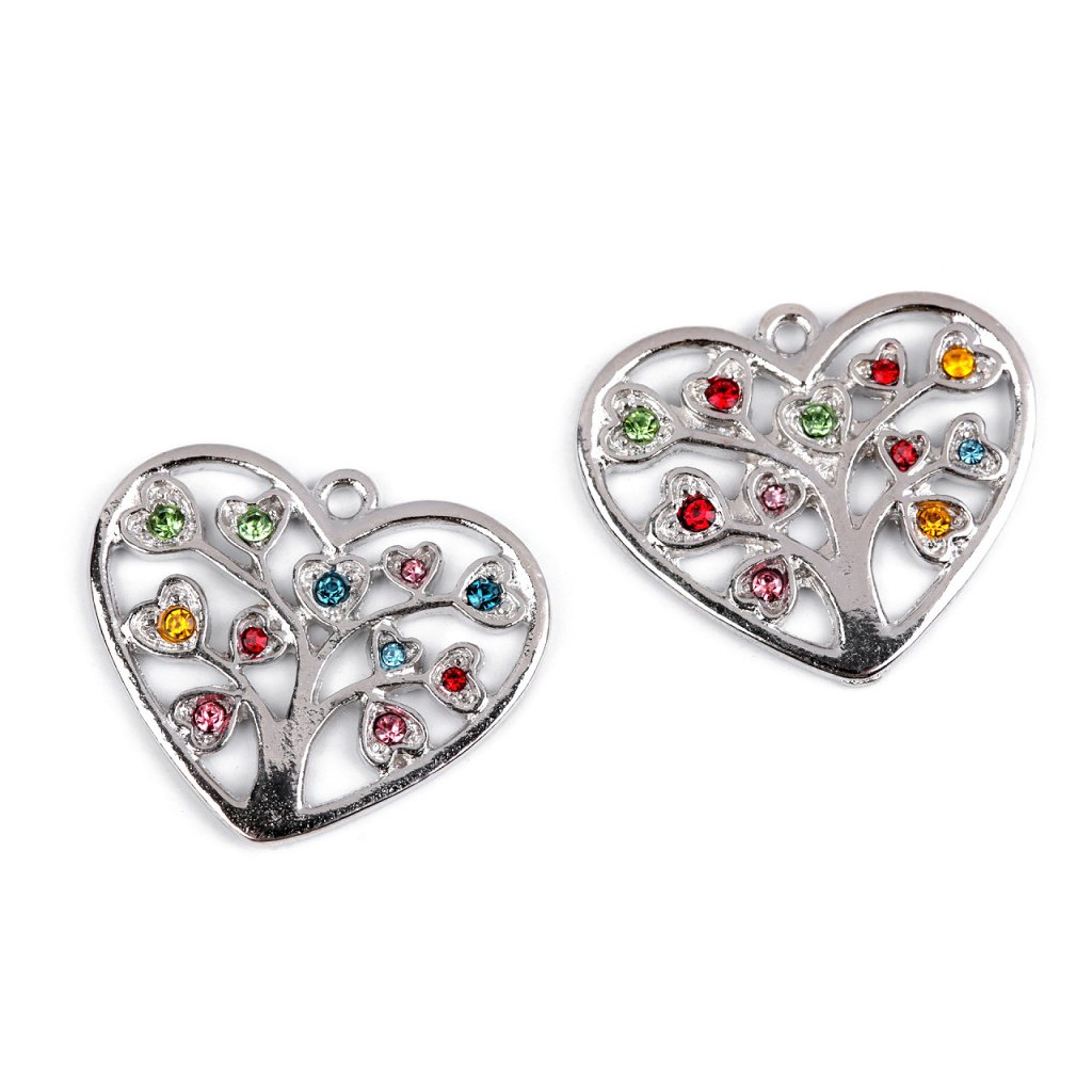 Přívěsek srdce se stromem života a broušenými kamínky 26x30 mm