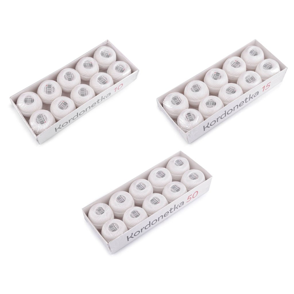 Háčkovací a paličkovací přízi Kordonetku nabízíme v několika tloušťkách. Je velice kvalitní, ze 100% bavlny. Je určená na háčkování deček, přehozů, záclon, apod. Je oblíbená na háčkování malých andělíčků a vánočních či velikonočních ozdob. Příze je vhodná i na paličkování.