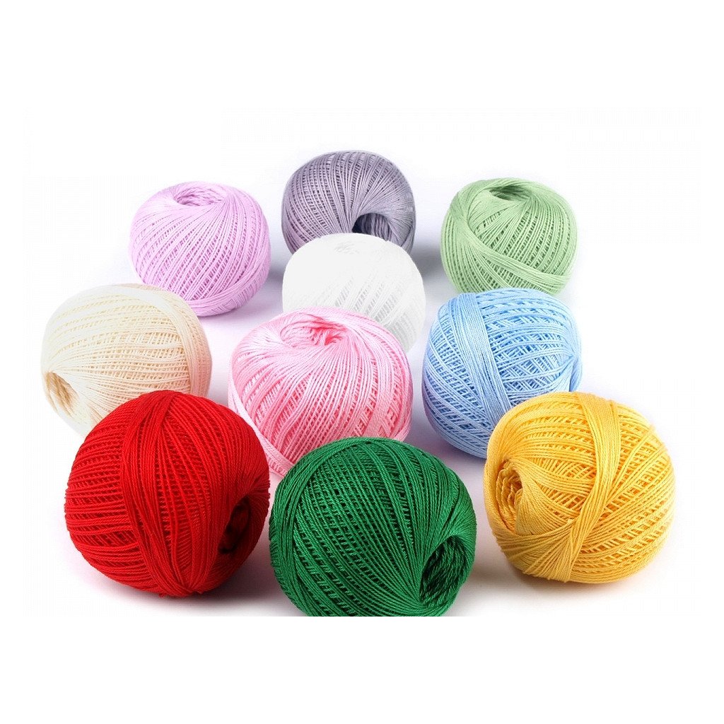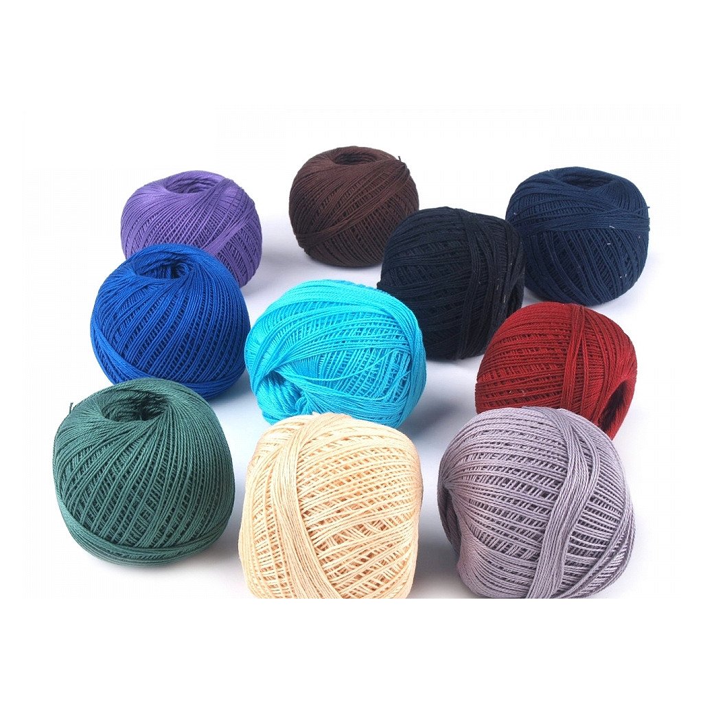 Háčkovací/pletací příze, tex50x3, 10 klubek (30g-200m) v krabičce. Čísla 50x3 znamenají: 50tex je číslování váhové (rozhodující je váha - hmotnost určité délky nitě). Zde platí pravidlo: Čím vyšší je číslo, tím hrubší je příze. Číslo 3 znamená, že nit se skládá ze 3 jednoduchých nití.