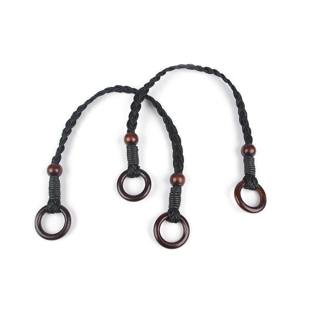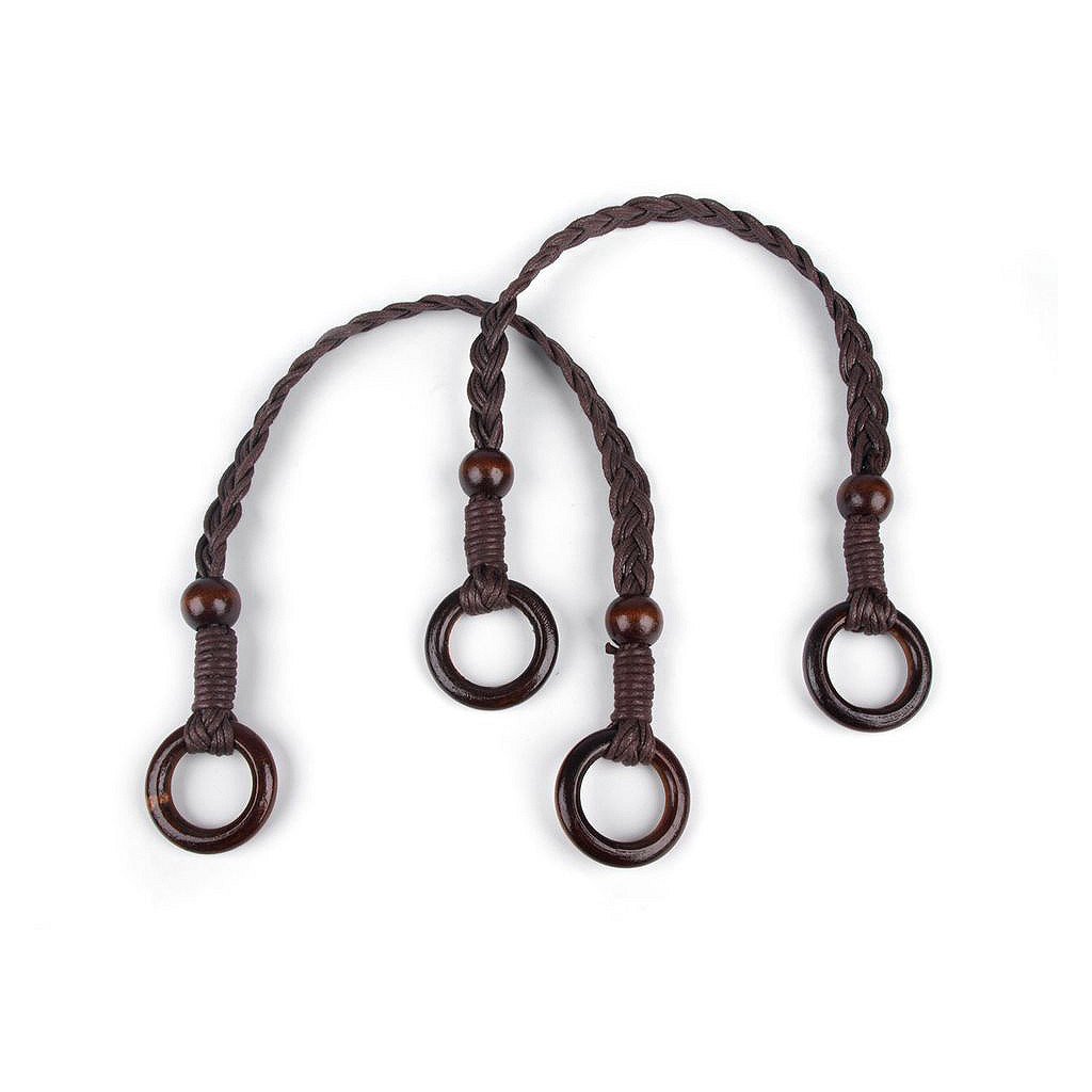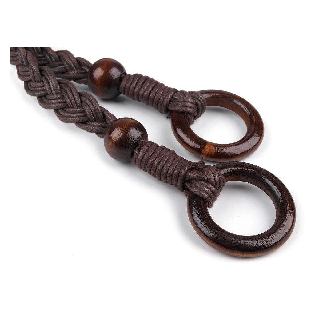 Ucha jsou pletena z textilní voskované šňůry, na obou stranách zakončena korálky a dřevěnými kroužky. Ucha mají šíři 1,5 cm. Kroužek na koncích má vnější průměr 44 mm, vnitřní průměr 28 mm.